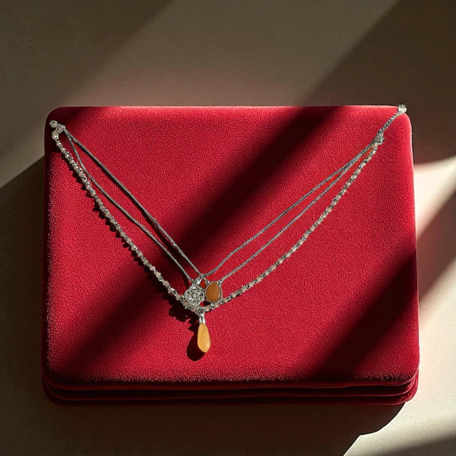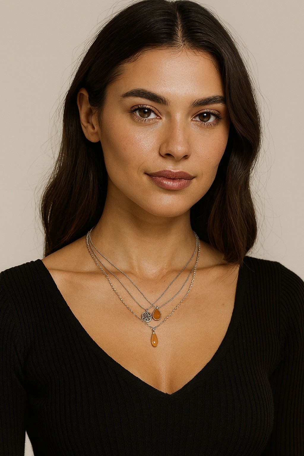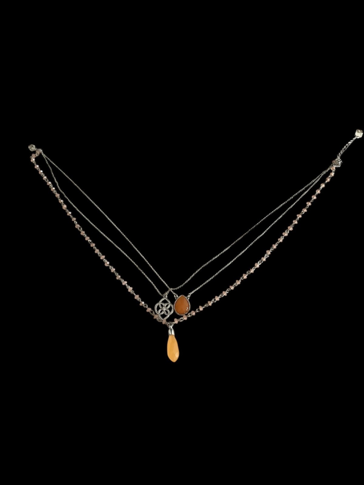 - Chaps Y2K Layered Necklace with Orange Glass Teardrop Pendant