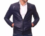 Chaqueta azul de motociclista con estilo para hombre hecha a mano de cuero genuino ajuste de piel de cordero\MN