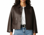 Chaqueta casual de piel de cordero hecha a mano marrón oscuro para mujer de c...