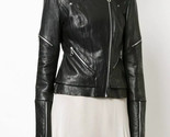Chaqueta para mujer de cuero de cordero suave real estilo motocicleta negra m...