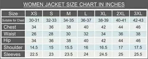 Te sugerimos que el tamaño del pecho de la chaqueta debe ser 4 pulgadas mas grande que el tamaño real del pecho de tu cuerpo. Si tu pecho real es de 30 pulgadas, entonces tienes que seleccionar el tamaño del pecho de 34 pulgadas de nuestra tabla de tallas.