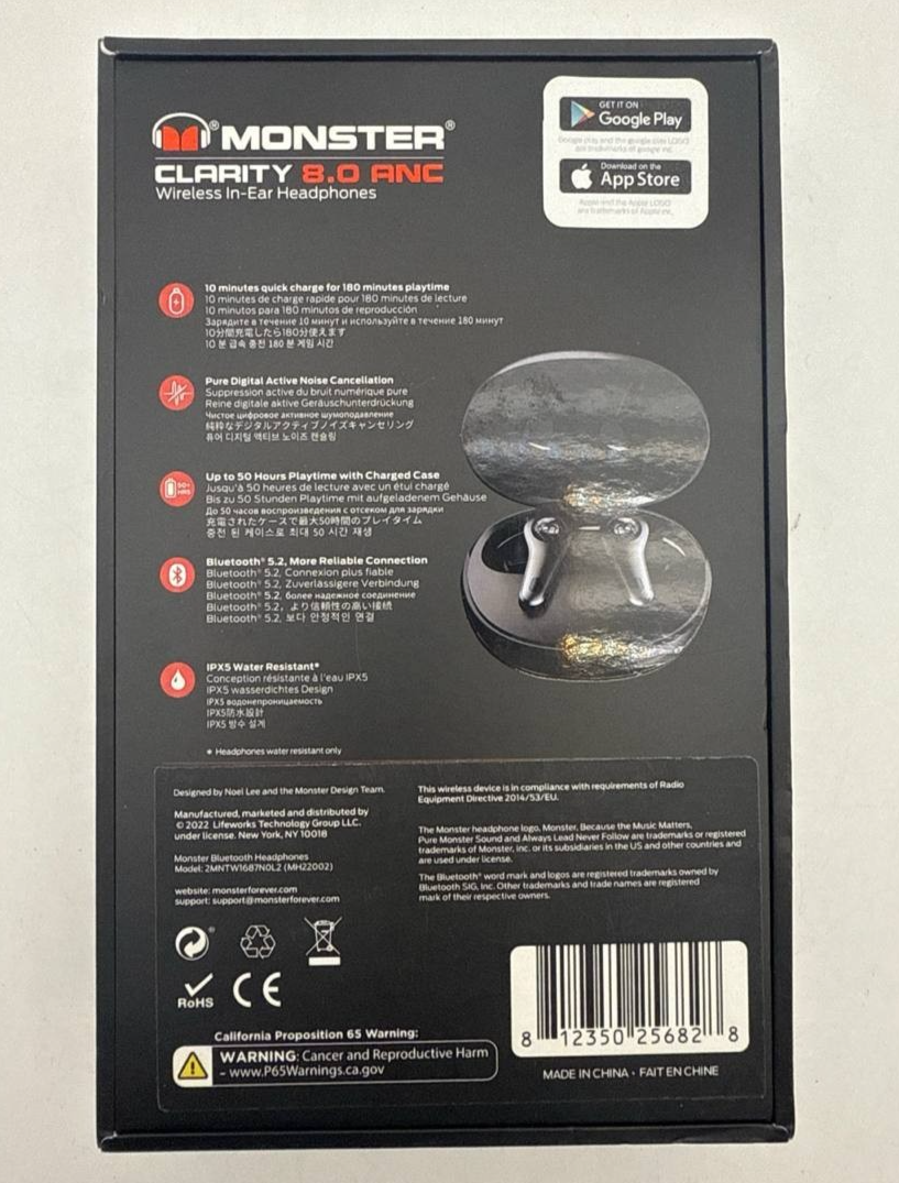 Compatibility: Compatible with Monster Clarity 8.0 ANC True Wireless Earbuds (Model: MH22002)