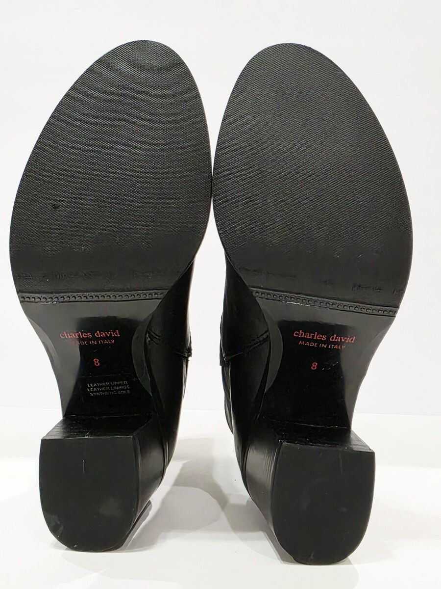 - Charles David BLACK LEATHER Ankle Boot Pull-On Chelsie Booties Italy Women 8 New
