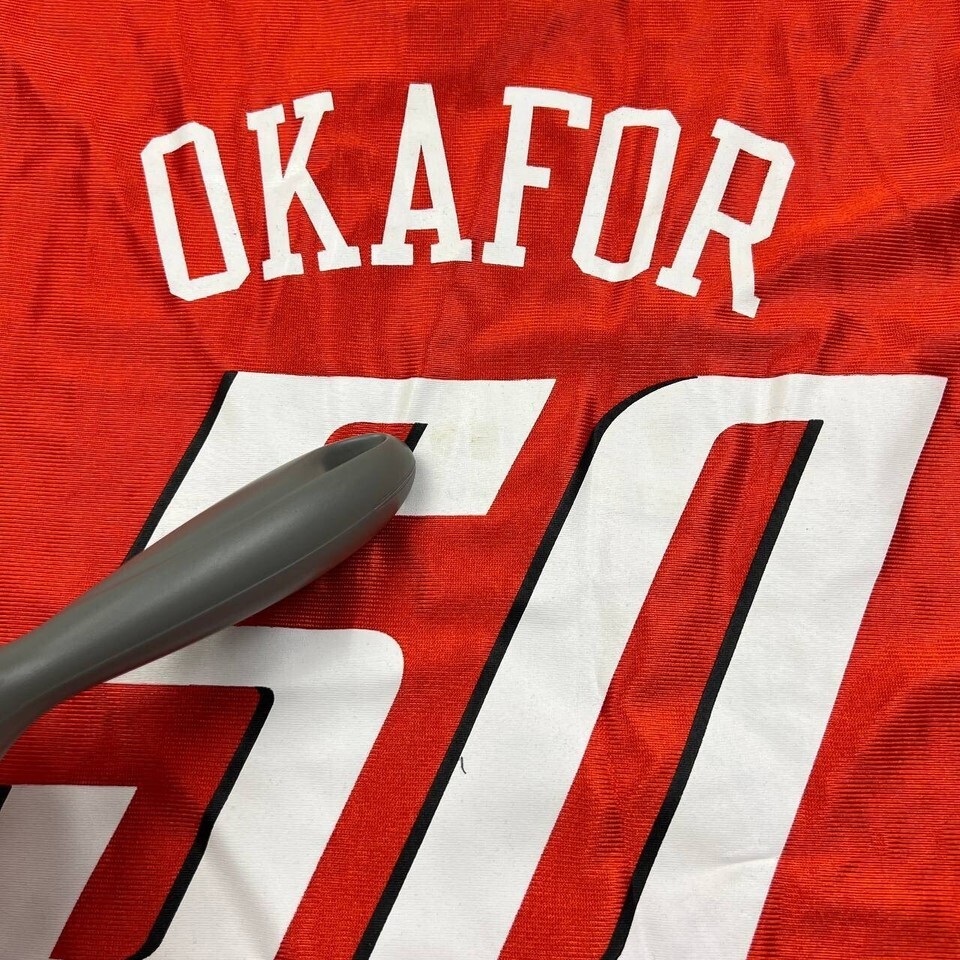 Please see photos for measurement. We will ship your orders via USPS Carrier with a tracking number for confirmation. for USED ITEM only - we "WASHED" all the clothes before posting. Please feel free to ask any questions. We answer most questions instantly! has a stain on the logo at the back A16179