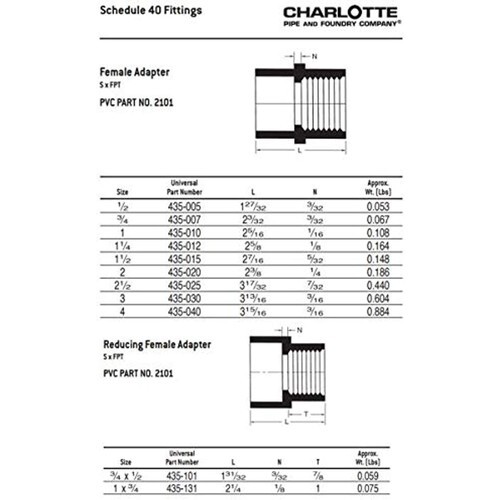 - CHARLOTTE PIPE 3/4 SCH 40 FEMALE ADT SXFPT CONTRACT PAC PRESSURE ( 10 Unit Bag )