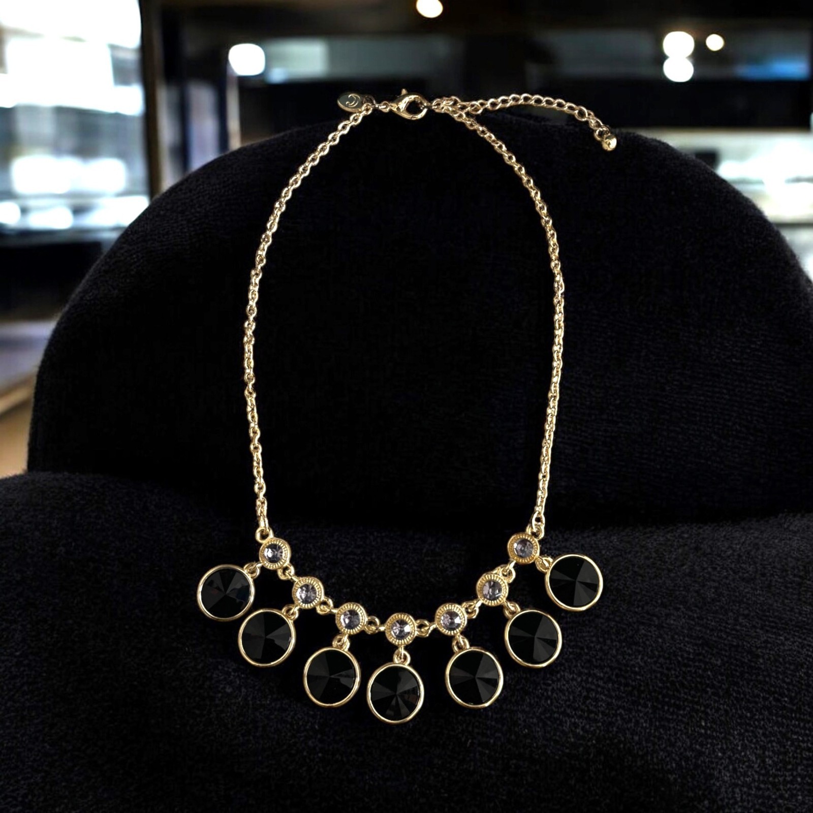 - Charming Charlie Black & Gold Statement Necklace – Faceted Discs & Crystal Accen