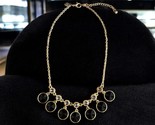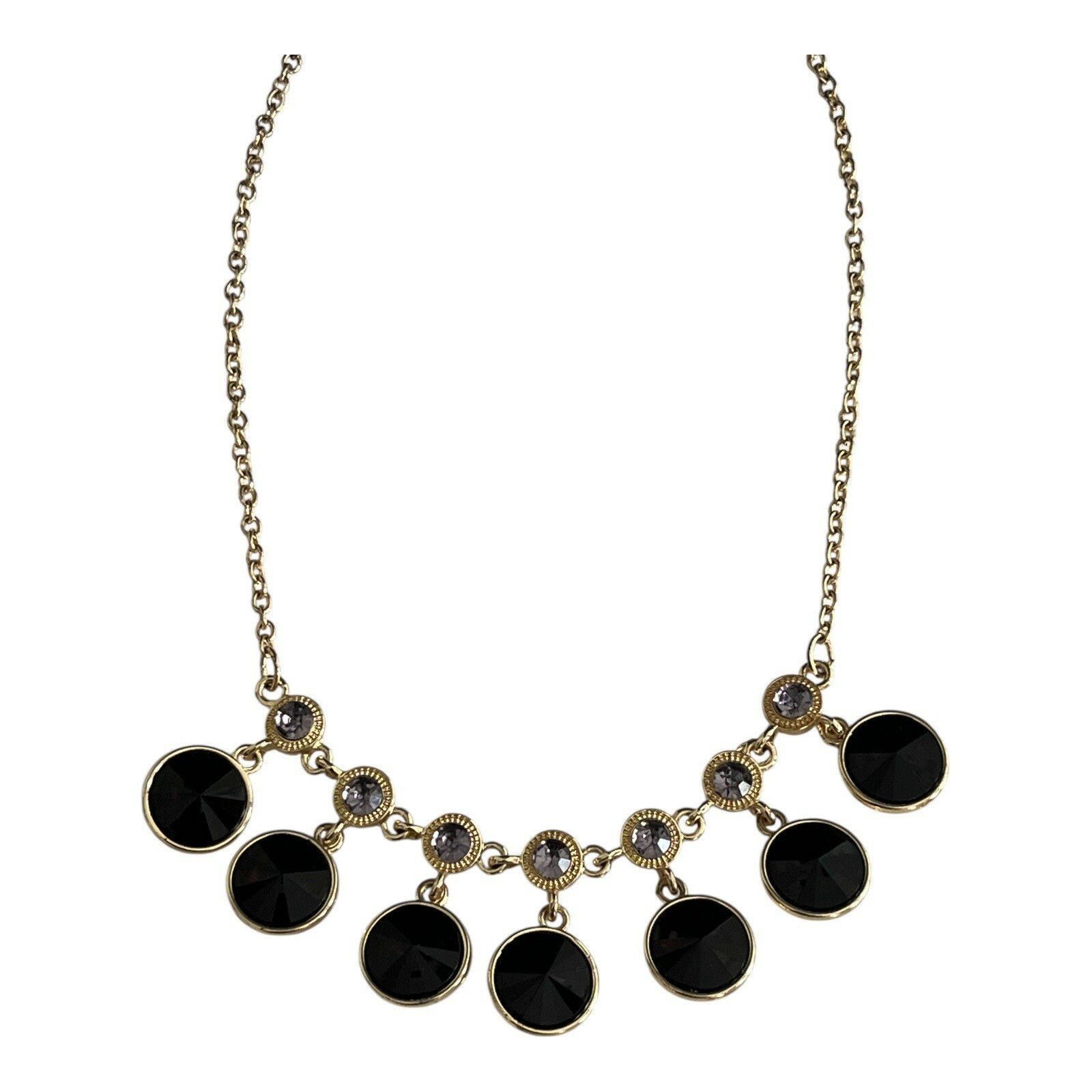 Charming Charlie Black Gold Statement Necklace ? Faceted Discs Crystal Accents ? 7? Drop