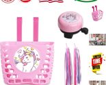 - Charming Pink Unicorn Bike Basket Set with Bell & Streamers for Kids' Bicycles
