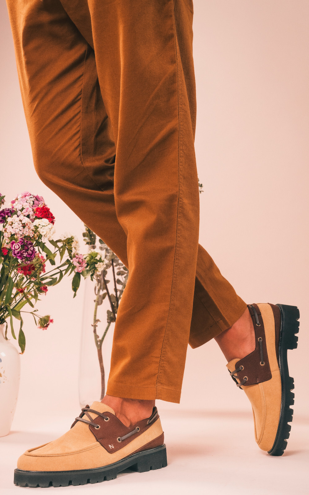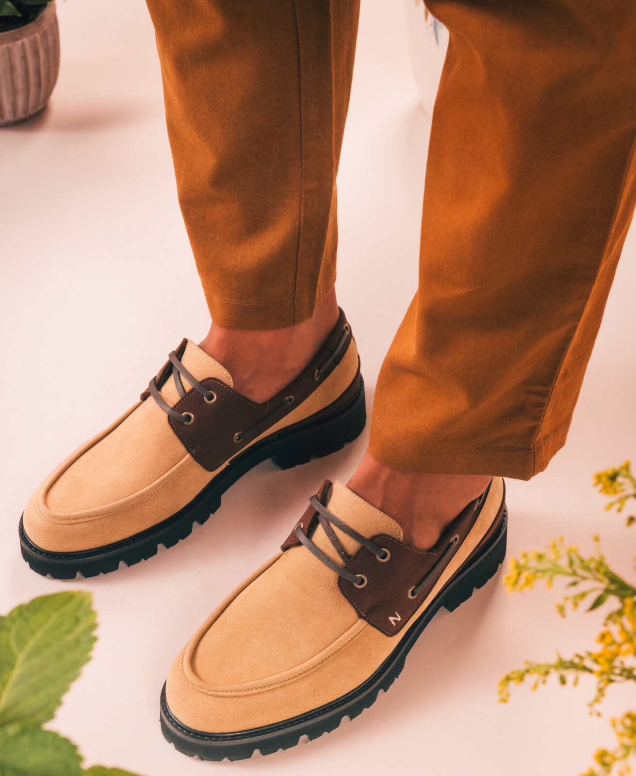 - Chaussures bateau homme véganes plates en microfibre daim semelle décontracté