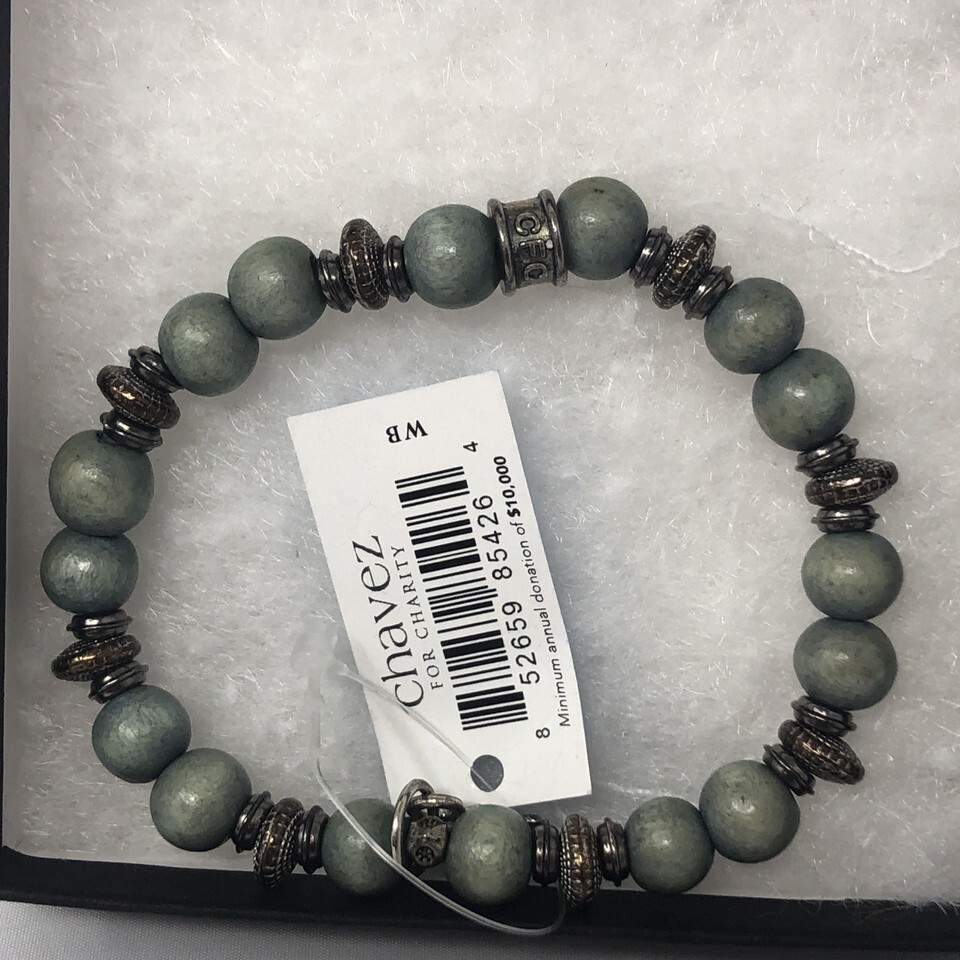 - Chavez For Charity Lotus Charm Beaded Bracelet Green Wood Beads With Tag