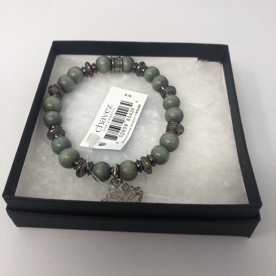 Chavez For Charity Lotus Charm Beaded Bracelet Green Wood Beads With Tag