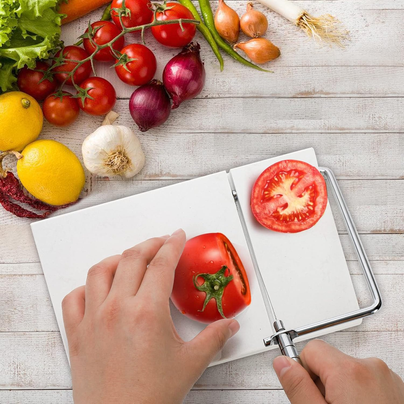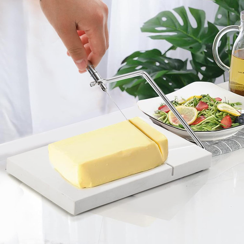 - Cheese Slicer Cutting Board, Marble Cutter with 6 Wires, 8" L X 5" W Heavy Duty