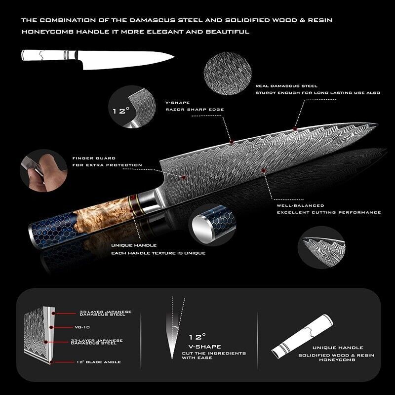 - Chef Knives VG10 Japanese Damascus Steel Fish Meat Vegetables Kitchen Home Tools