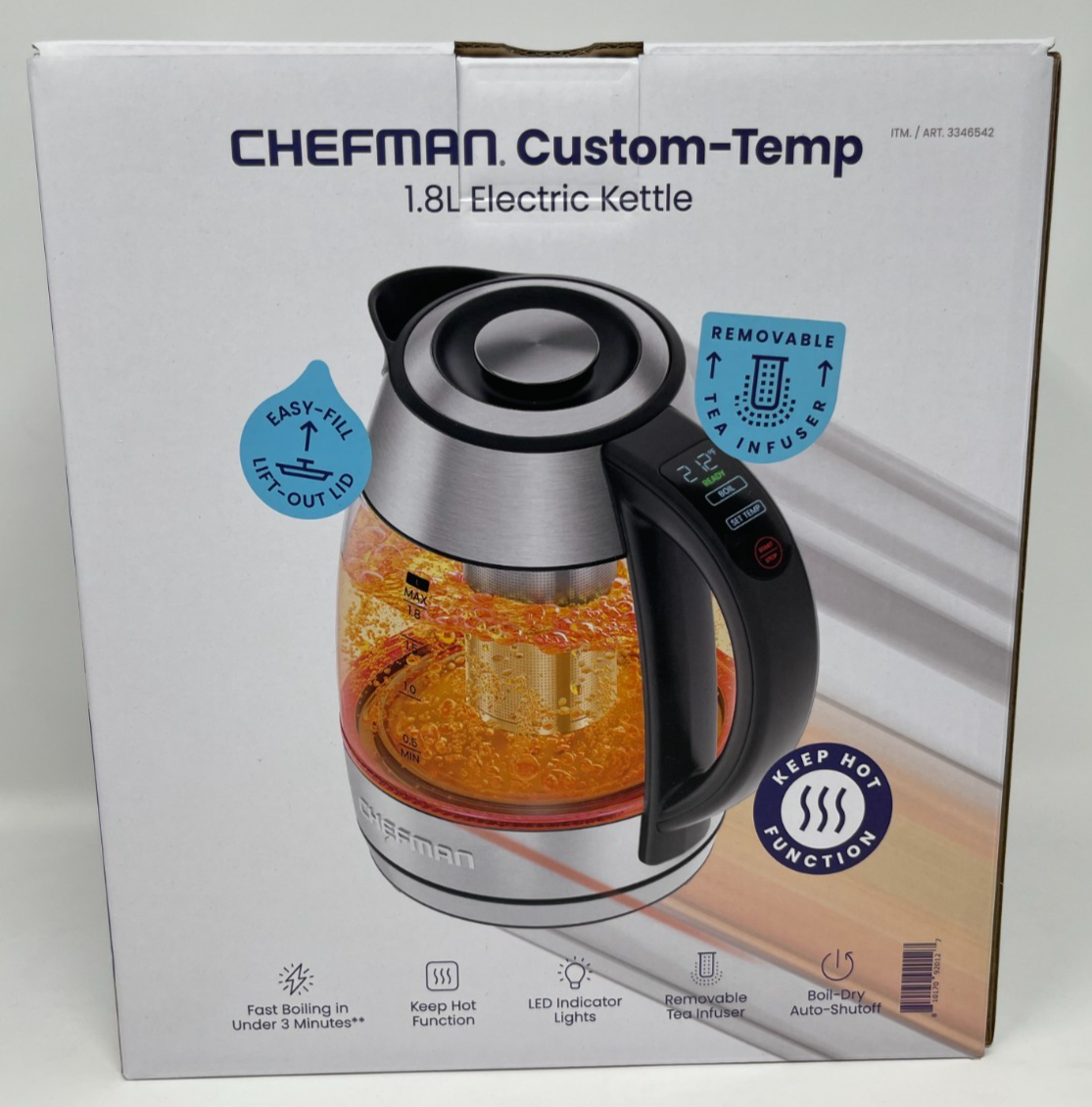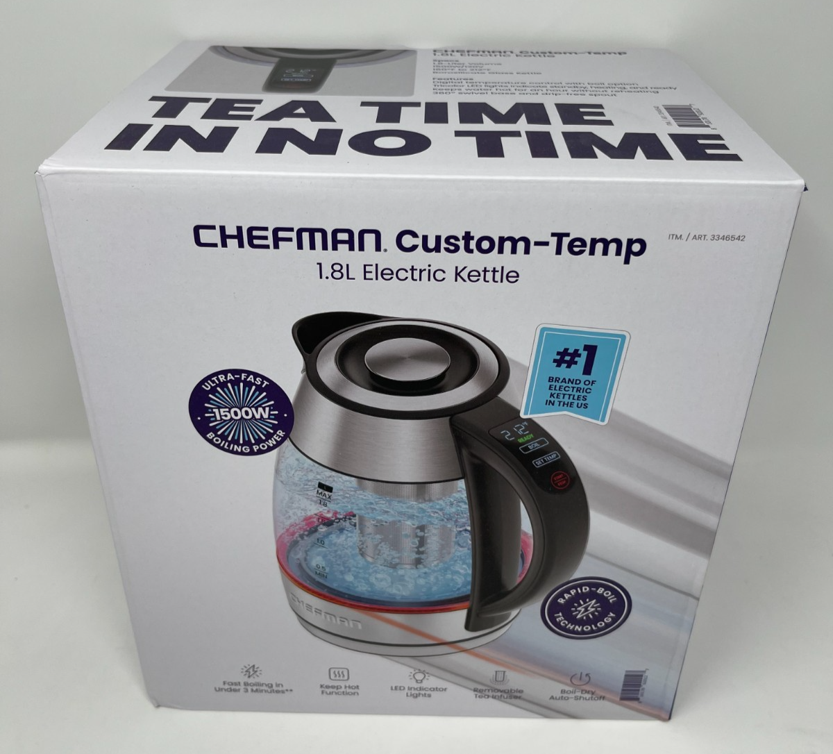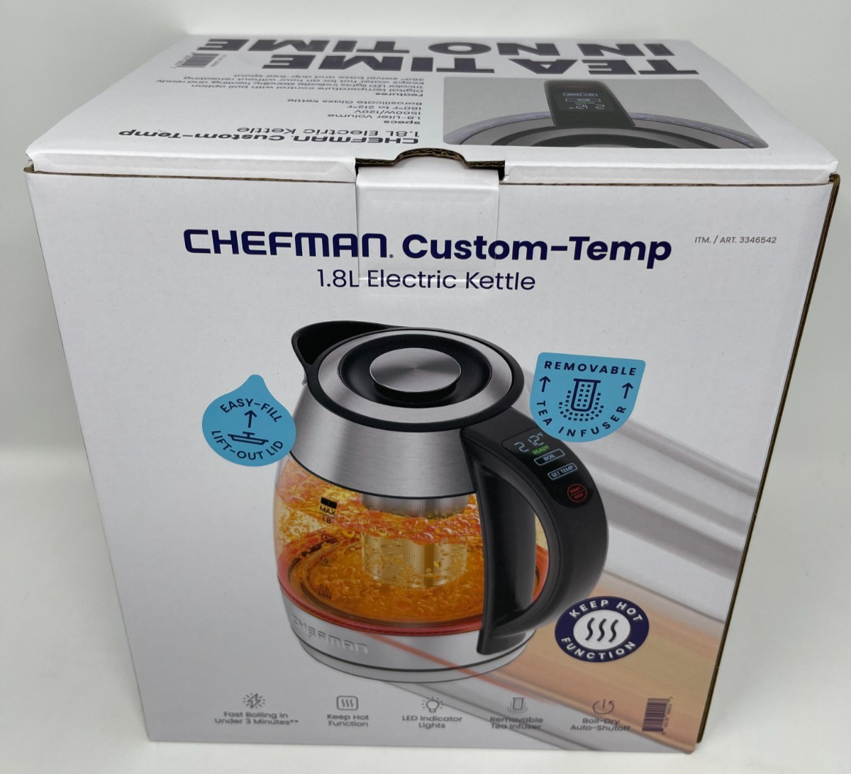 - Chefman Custom-Temp 1.8L Electric Kettle wit Tea Infuser 1500W RJ11-18-CTI-V2-CO