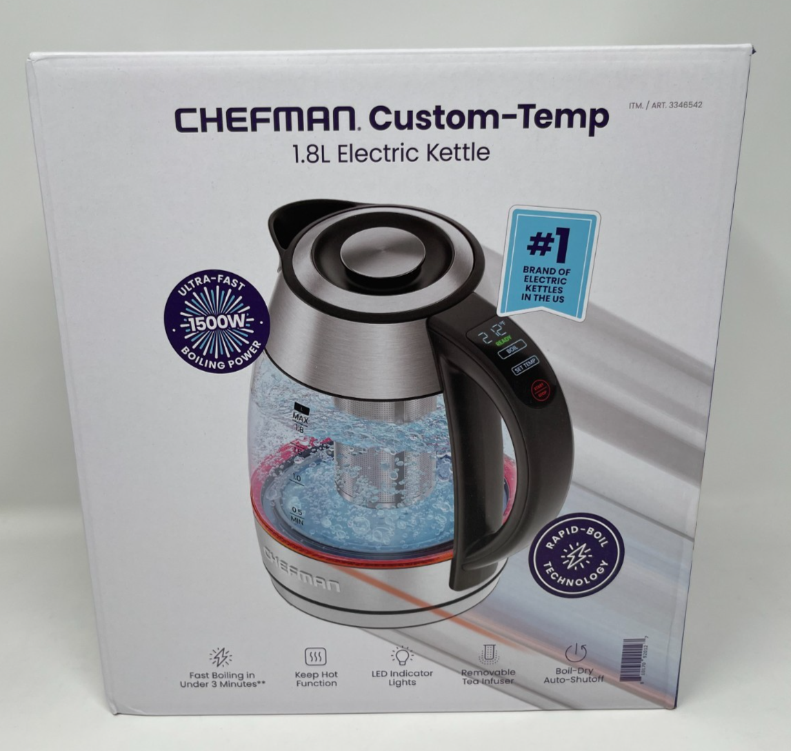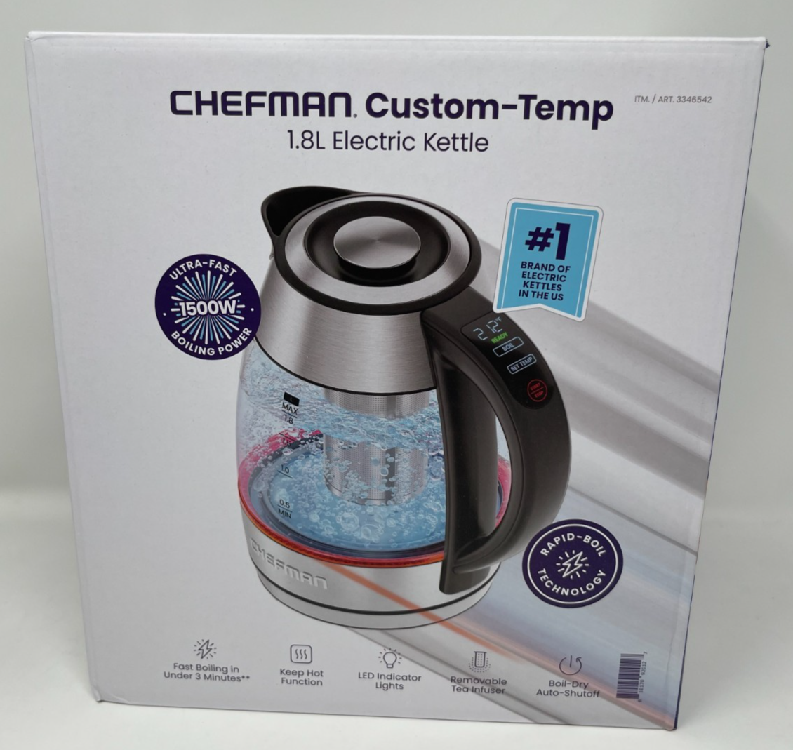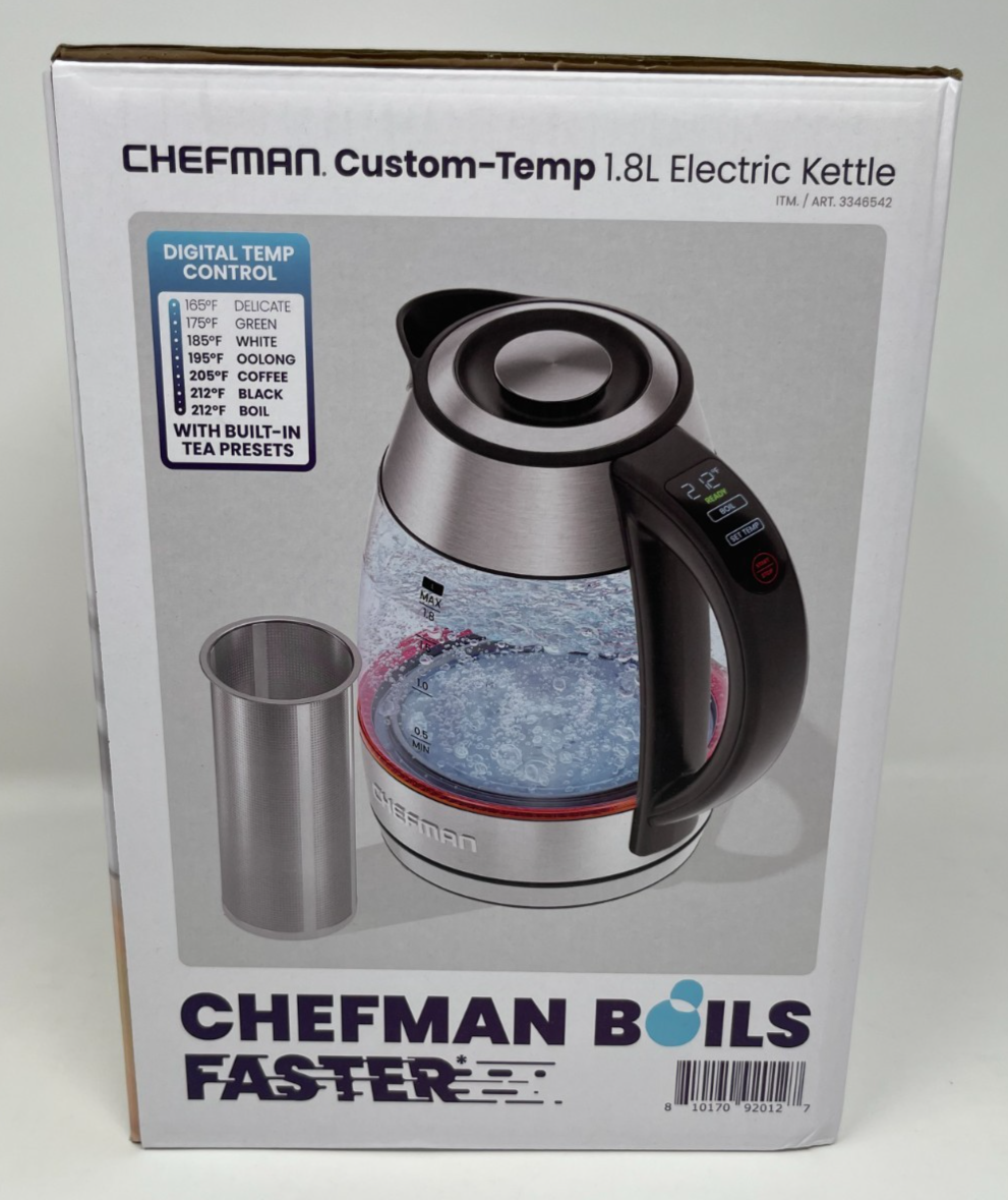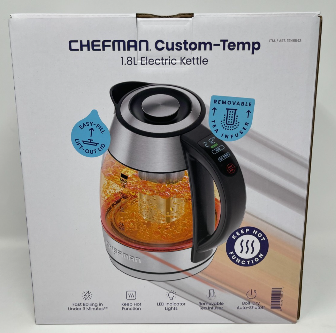 - Chefman Custom-Temp 1.8L Electric Kettle wit Tea Infuser 1500W RJ11-18-CTI-V2-CO
