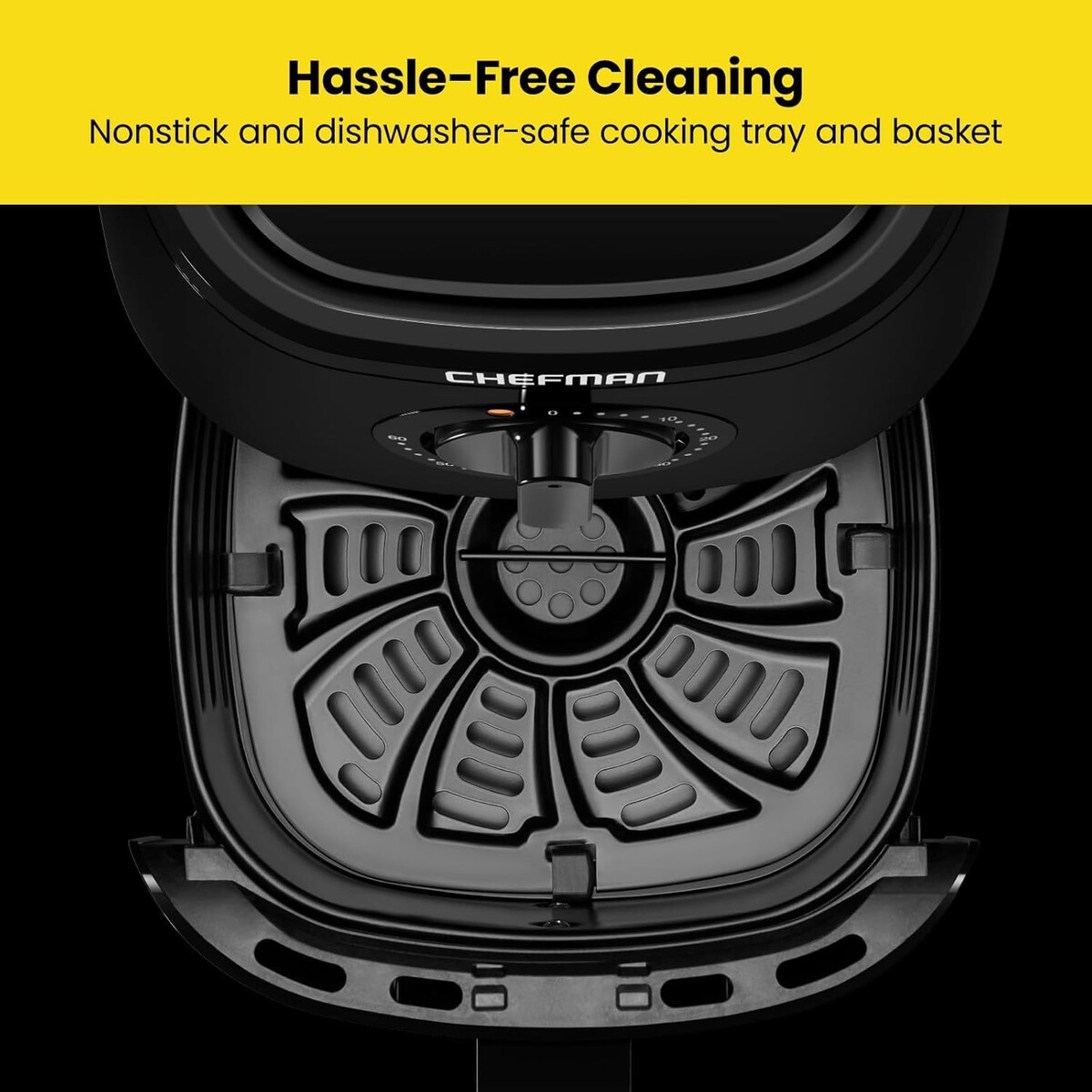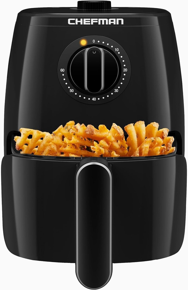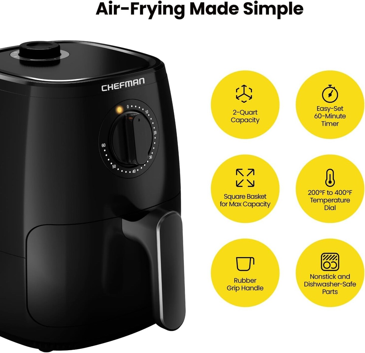 Chefman TurboFry 2-Quart Air Fryer, Dishwasher Safe Basket Tray, Use Little to No Oil For Healthy Food, 60 Minute Timer, Fry Healthier Meals Fast, Heat And Power Indicator Light, Temp Control, Black