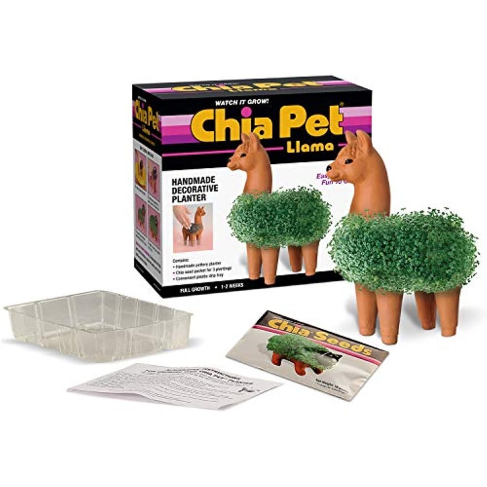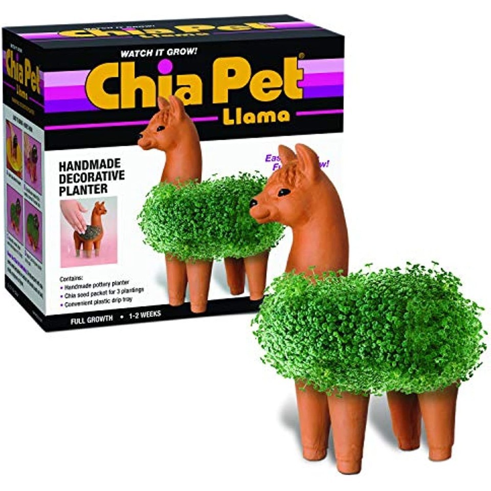 Chia CP439-01 Pet Llama Decorative Pottery Planter, Easy to Do and Fun to Grow Llama is now a Chia pet! Chia pet is a fun amusing gift for any age any occasion. Easy to do. . . Fun to grow! You'll see a full coat in about 1-2 weeks, you can reuse your Chia indefinitely. Simply replant with Chia seeds. Features EVERYTHING YOU NEED IN ONE: Includes a unique pottery planter, convenient plastic drip tray and chia seed packets for 3 plantings. FULL GROWTH 1-2 WEEKS: In just a few short weeks your chia pet will achieve maximum growth and enjoy a luscious green coat. Each Chia Pet contains a simple 6 step care instruction on how to grow your creation. MULTIPLE USES: Chia Planters can be washed and replanted indefinitely. The fun never stops with ch-ch-ch-chia pets! GREAT GIFT FOR ANY OCCASION: Chia Pets are the perfect and affordable gift for any budget. Both kids and adults will love to watch chia planters sprout and develop into a hilarious creation. THE CHIA COLLECTION: The variety is endless! Chia Pets come in all different shapes and sizes including your favorite presidents, actors, emojis, and even movie characters. Watch your collection keep growing! USA SHIPPING estimates delivery times and we work to get your item to you as quickly as possible and within those times, but please know it may take slightly longer than the estimate.