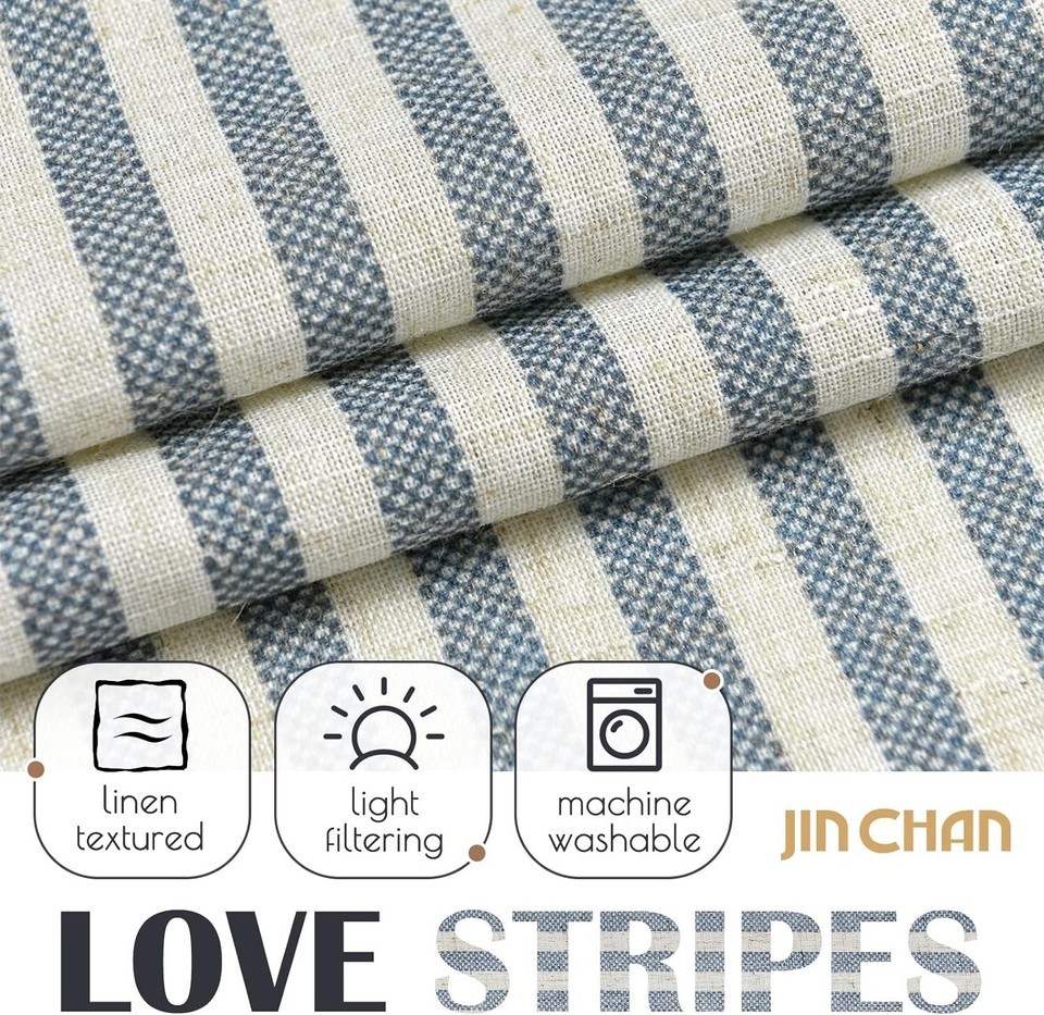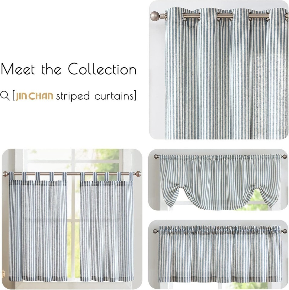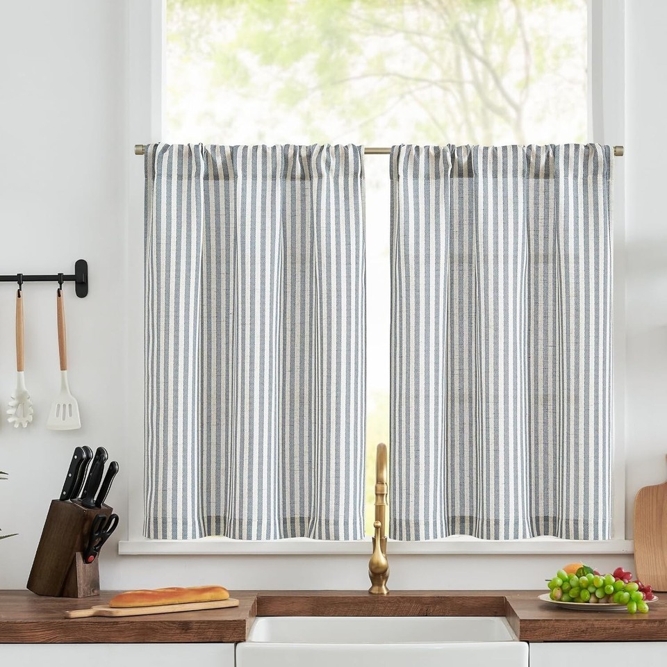 - Chic Blue Pinstripe Curtains 30" L - Light Filtering Drapes for Rustic Spaces