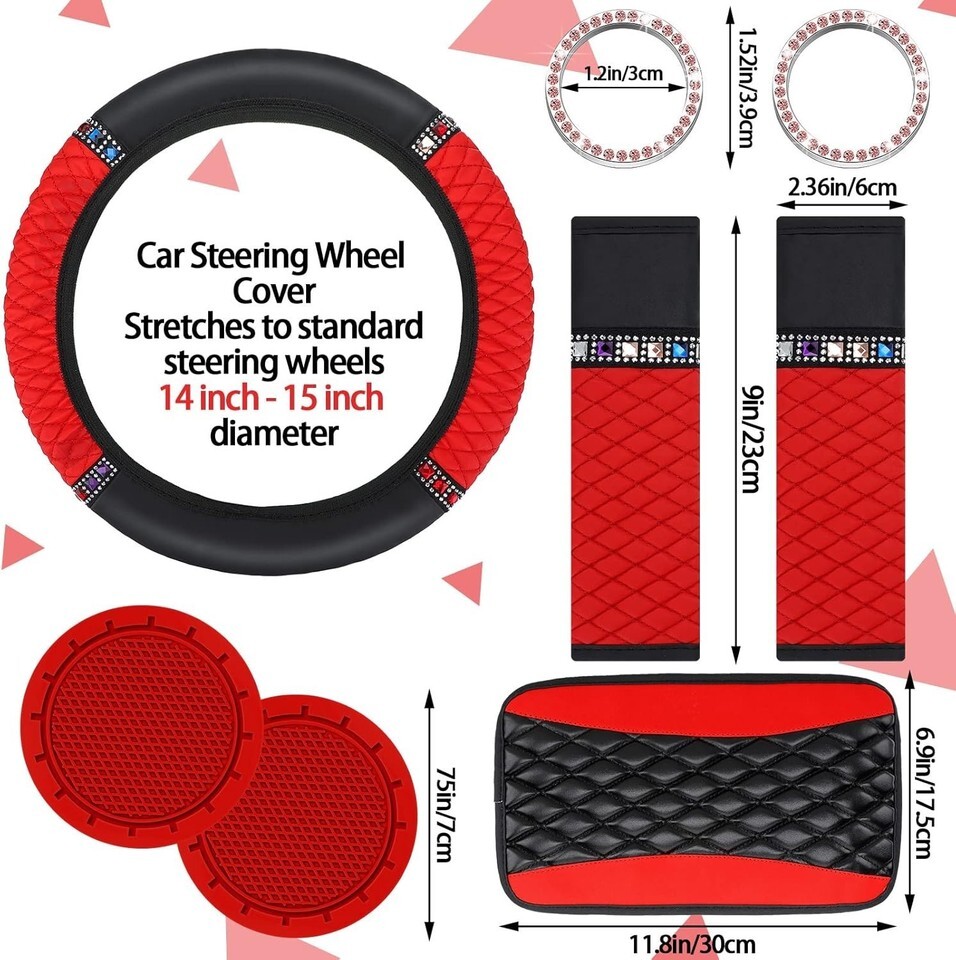 - Chic Red & Black Rhinestone Car Interior Set - 17 Essentials for Women Drivers