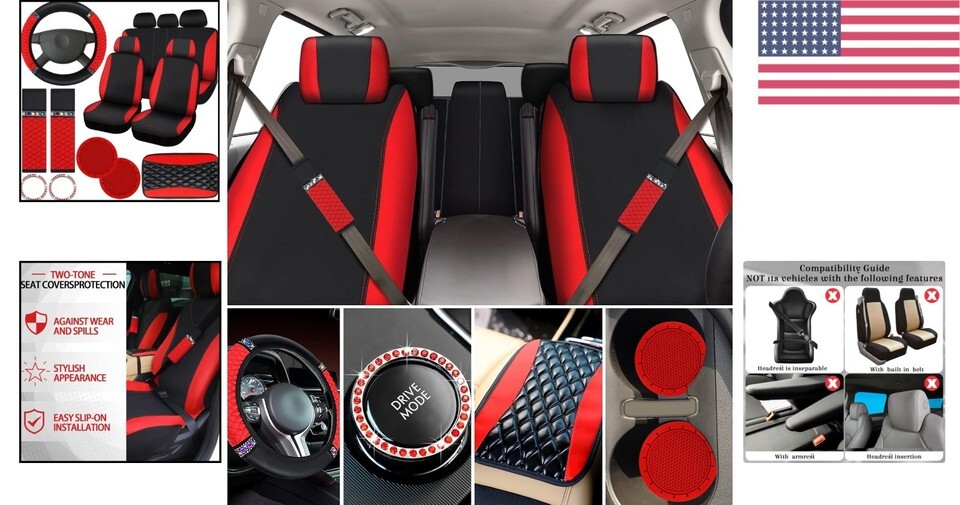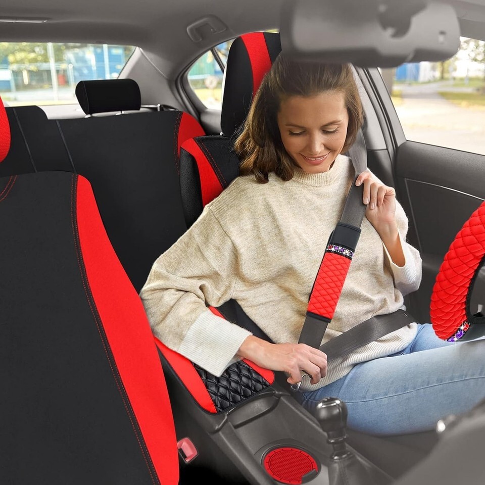 Adorned with a stunning red and black color scheme and charming rhinestones, this car accessories set is the epitome of chic. Effortlessly express your personality while making a striking impression on others.