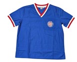 The product is a Chicago Cubs Adult Size XL Team Logo Scrub Healthcare Top Shirt by Jack Nadel. This unisex shirt is made from a comfortable cotton blend material in a solid blue color, suitable for medical professionals. Designed with a solid pattern and featuring the team logo of the Chicago Cubs, this scrub top is both practical and stylish for healthcare workers looking to show support for their favorite baseball team while keeping comfortable and clean during work hours.