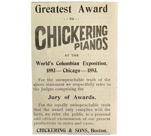 Chickering Piano World"s Fair 1894 Advertisement Victorian Instrument 2 ADBN1ss