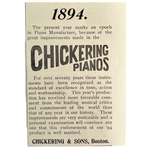 Chickering Pianos 1894 Advertisement Victorian Musical Instrument 1 ADBN1ss