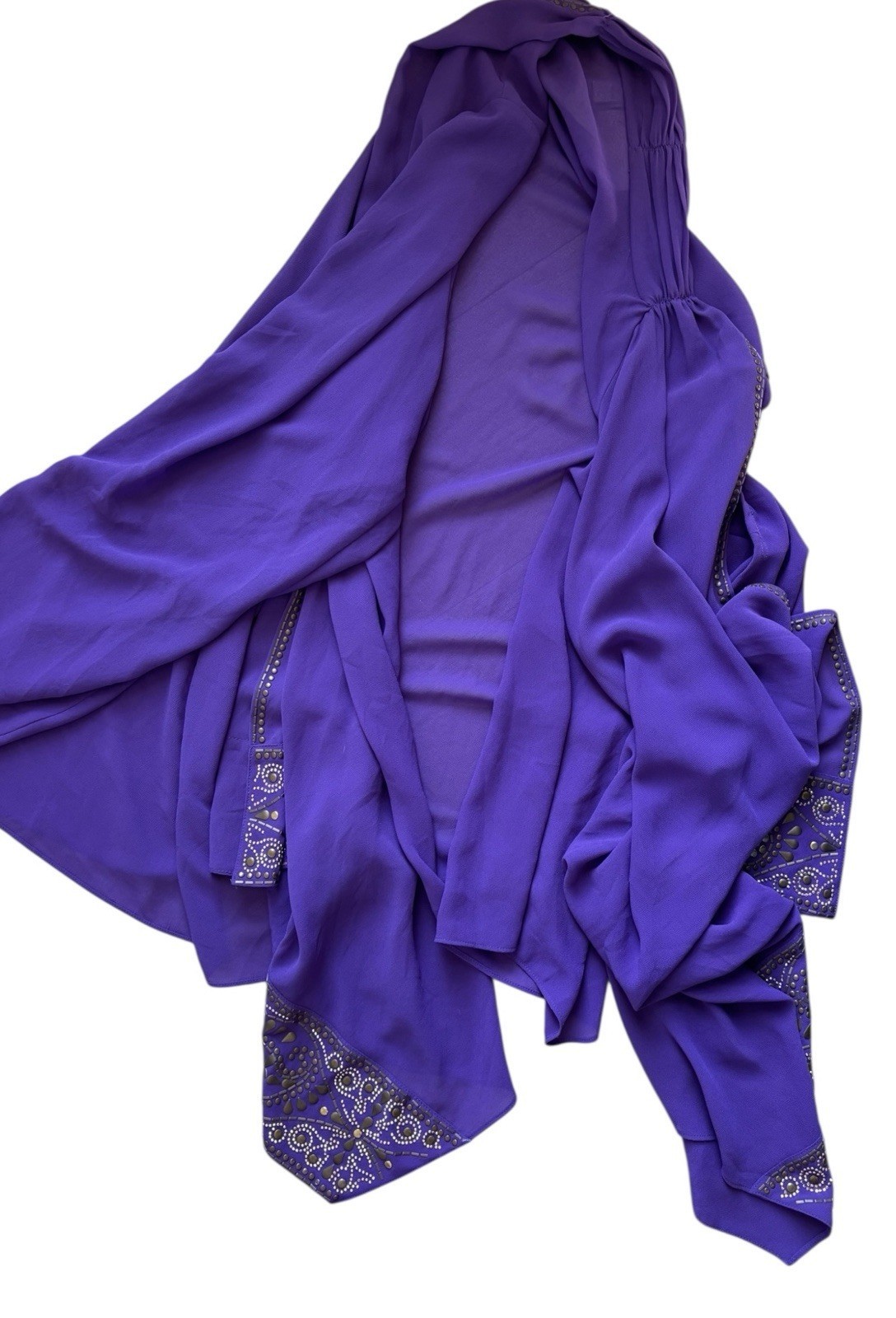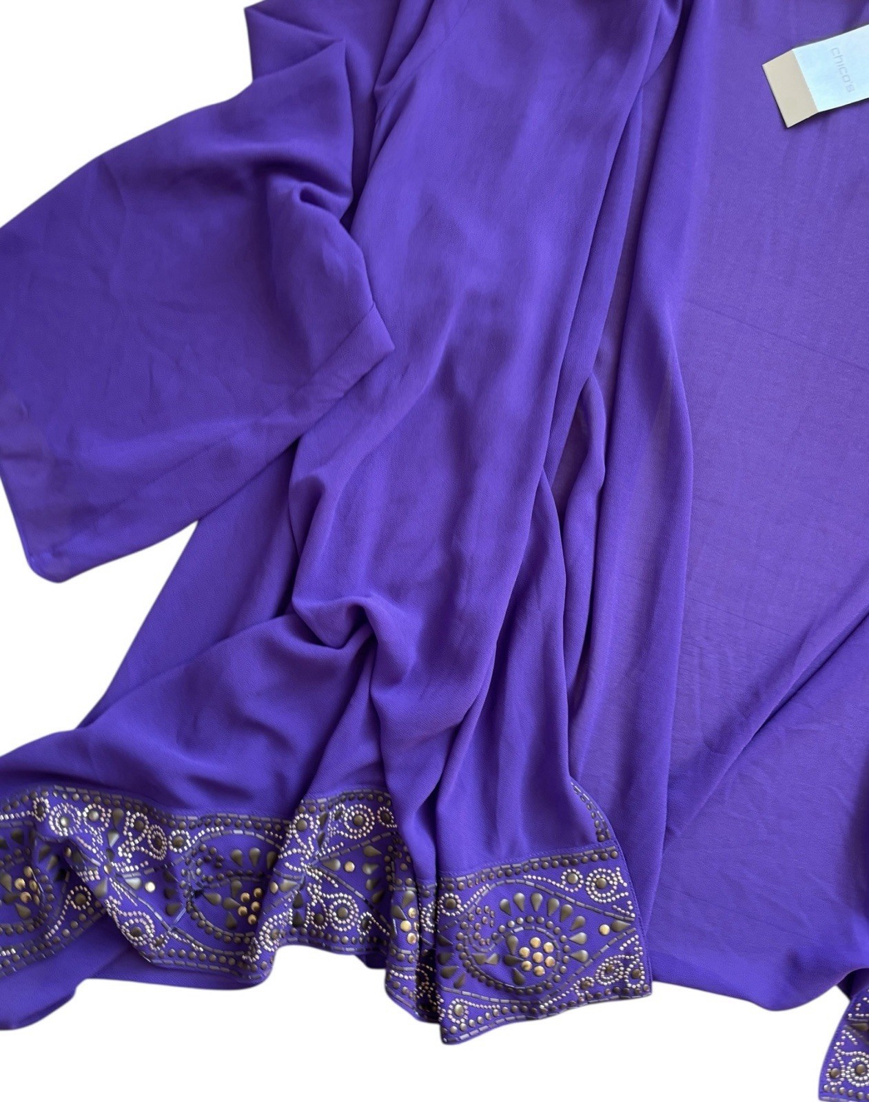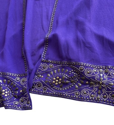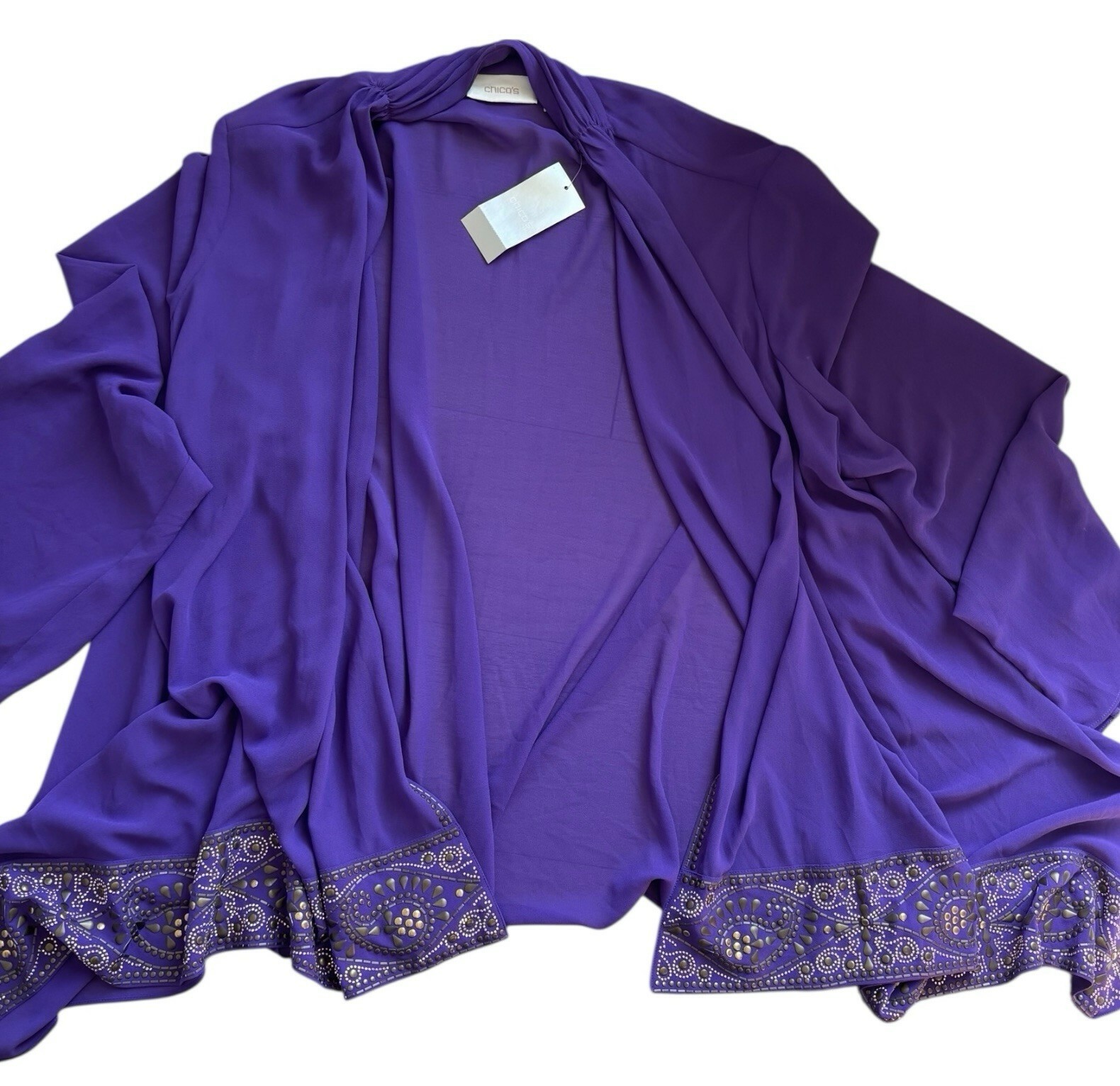 Chico's Dark Purple Open Sheer Cardigan Cape Sz 2/L 12 Whimsigoth Embellished
