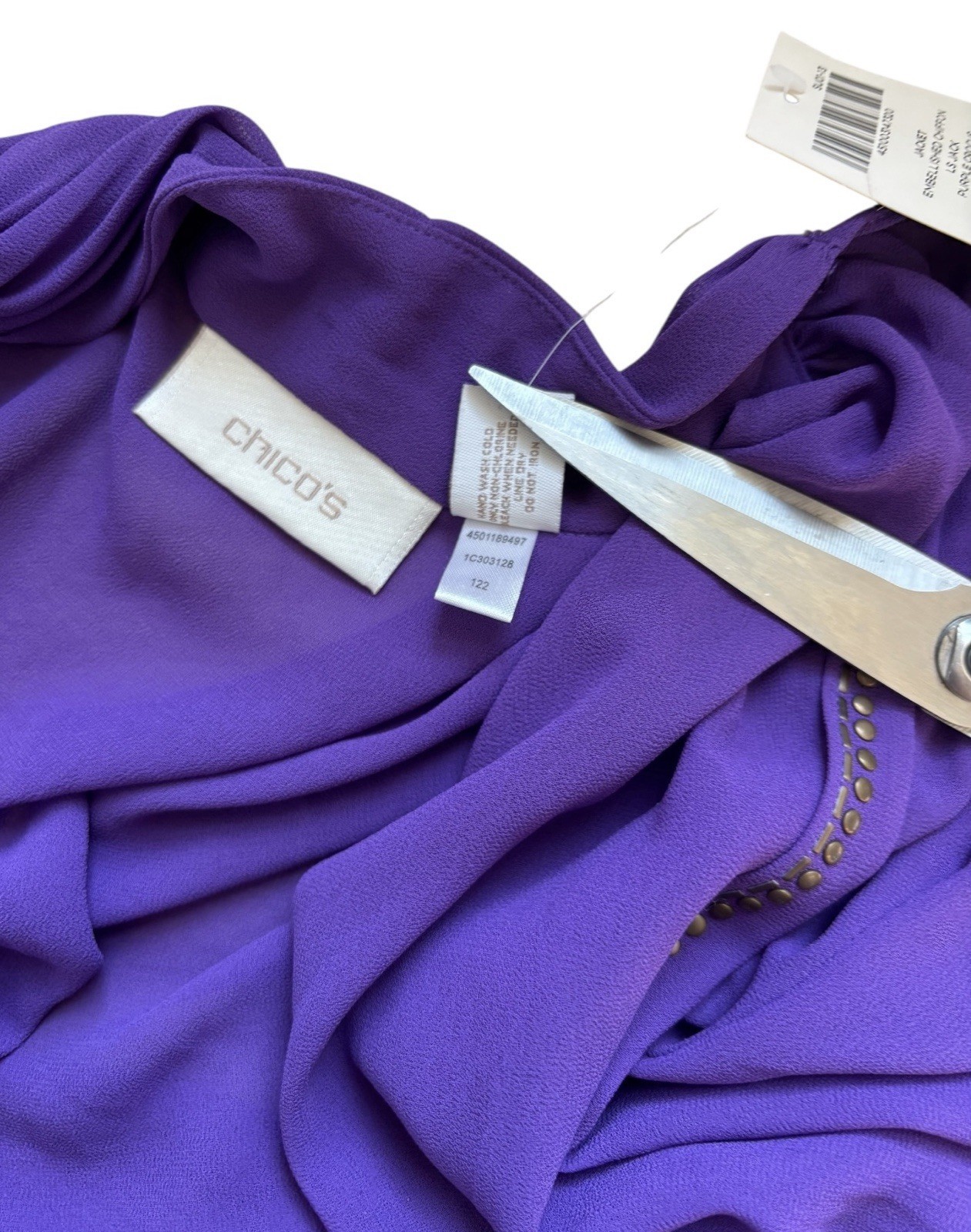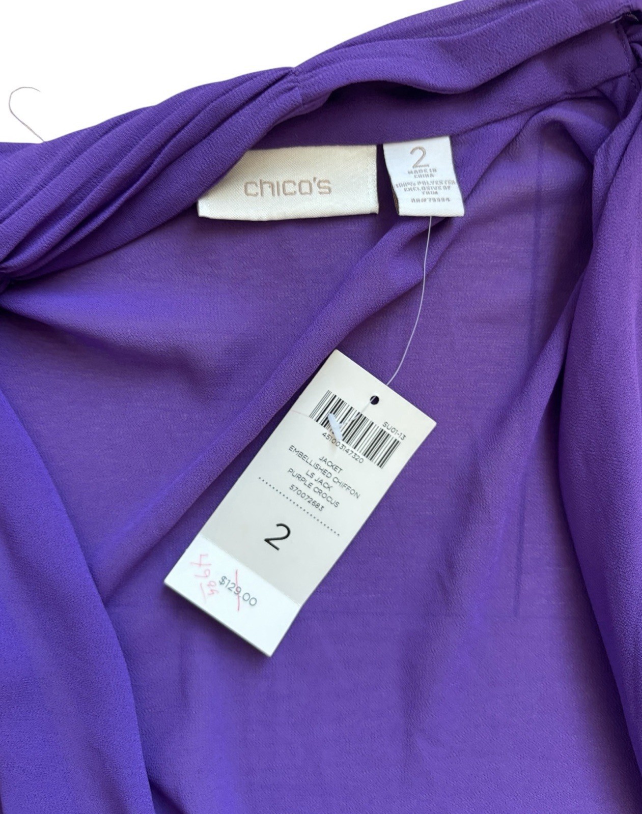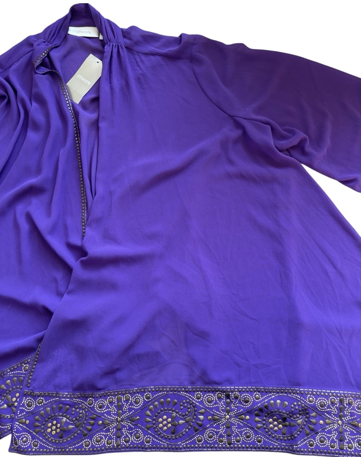 Chico's Dark Purple Open Sheer Cardigan Cape Sz 2/L 12 Whimsigoth Embellished