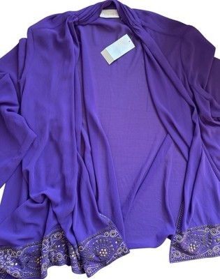 Stunning, loose fit, with sleeves. Open front jacket. Dark purple color. Brand new. MSRP $129.