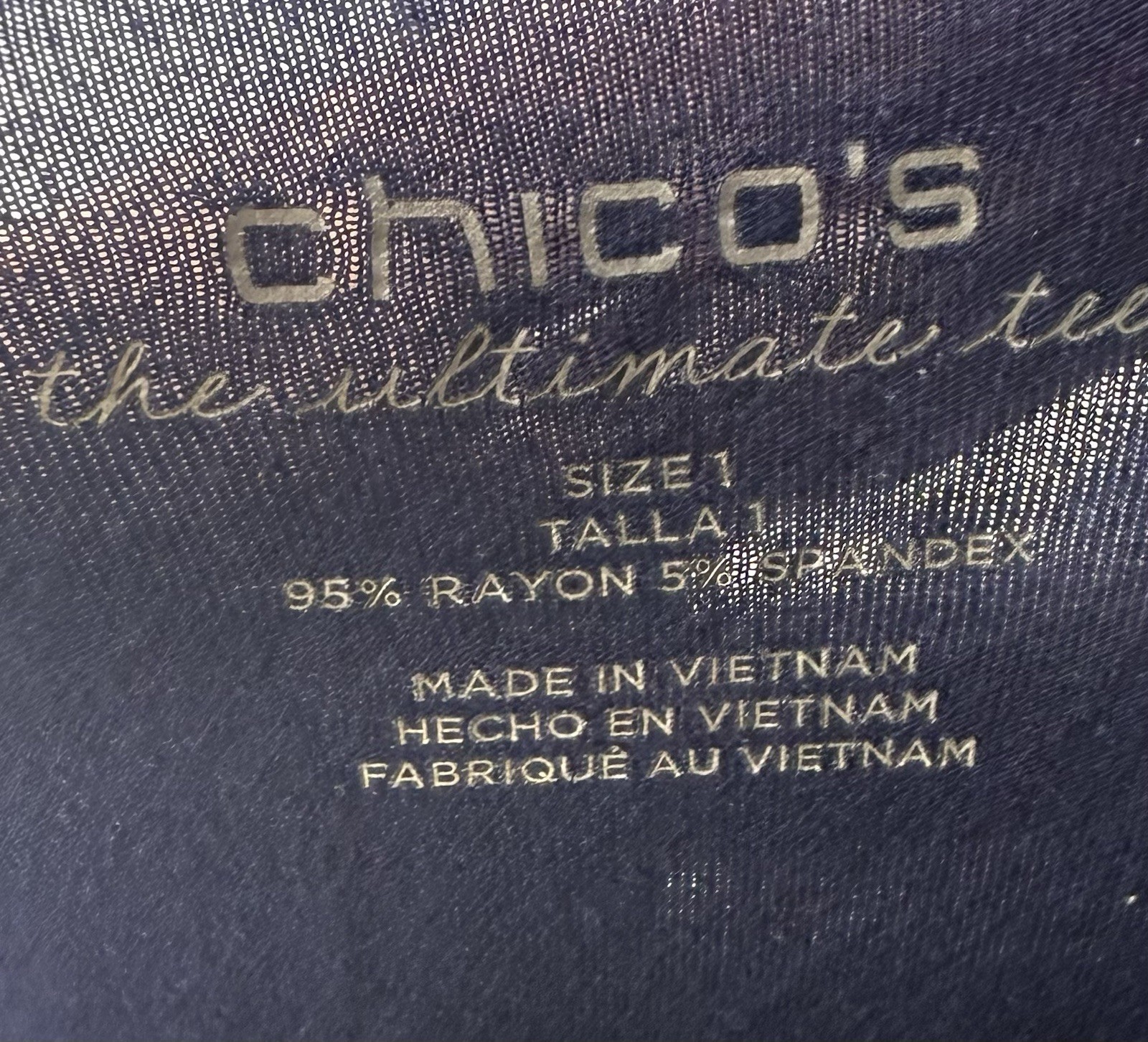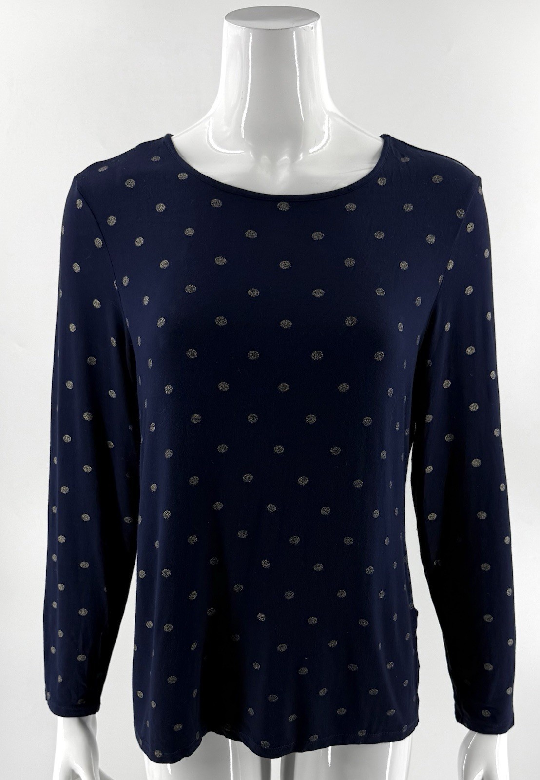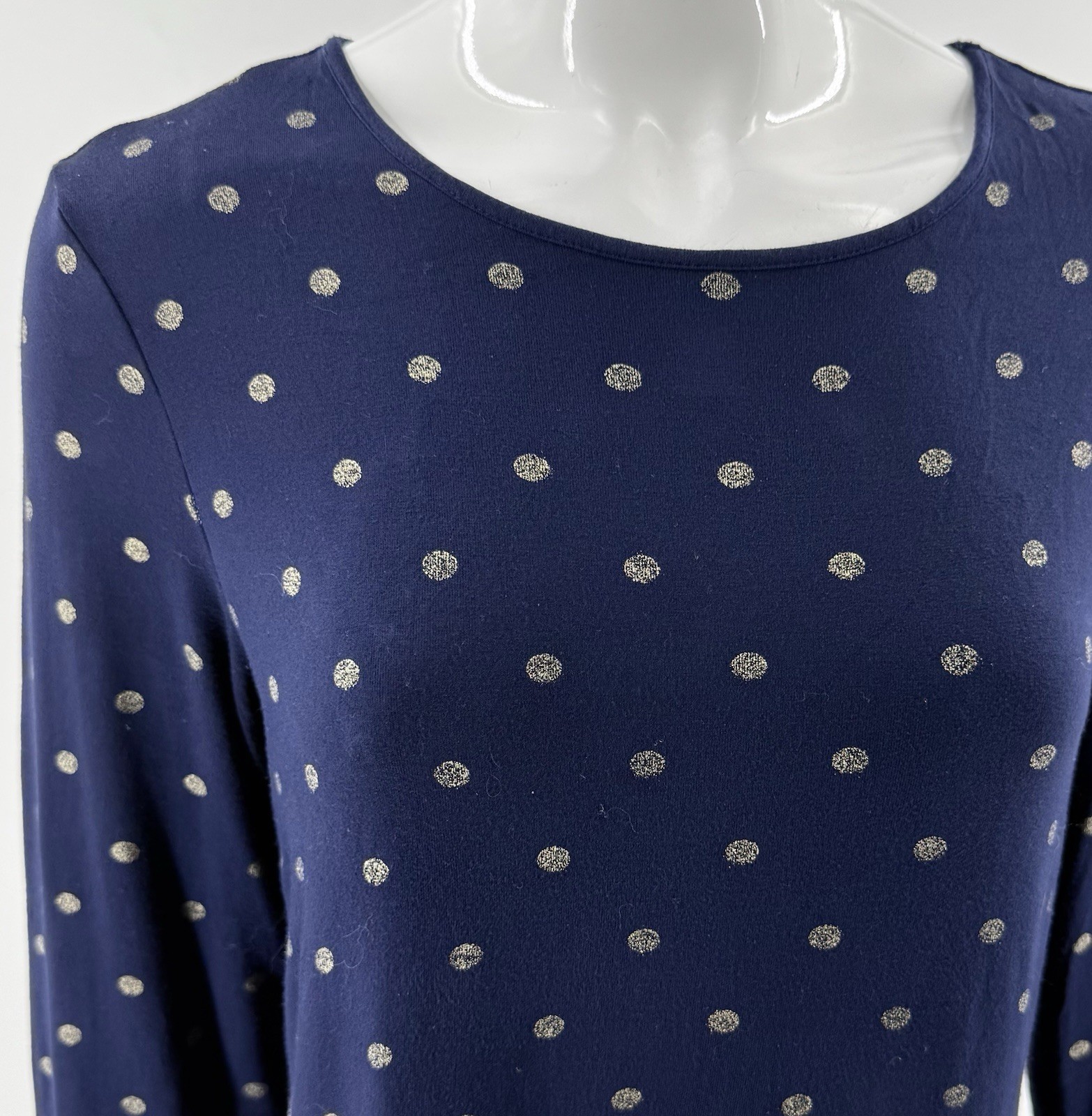 Chicos Foiled Dot Top Size 1 / US M Navy Blue Gold Polka Dots Tee Shirt