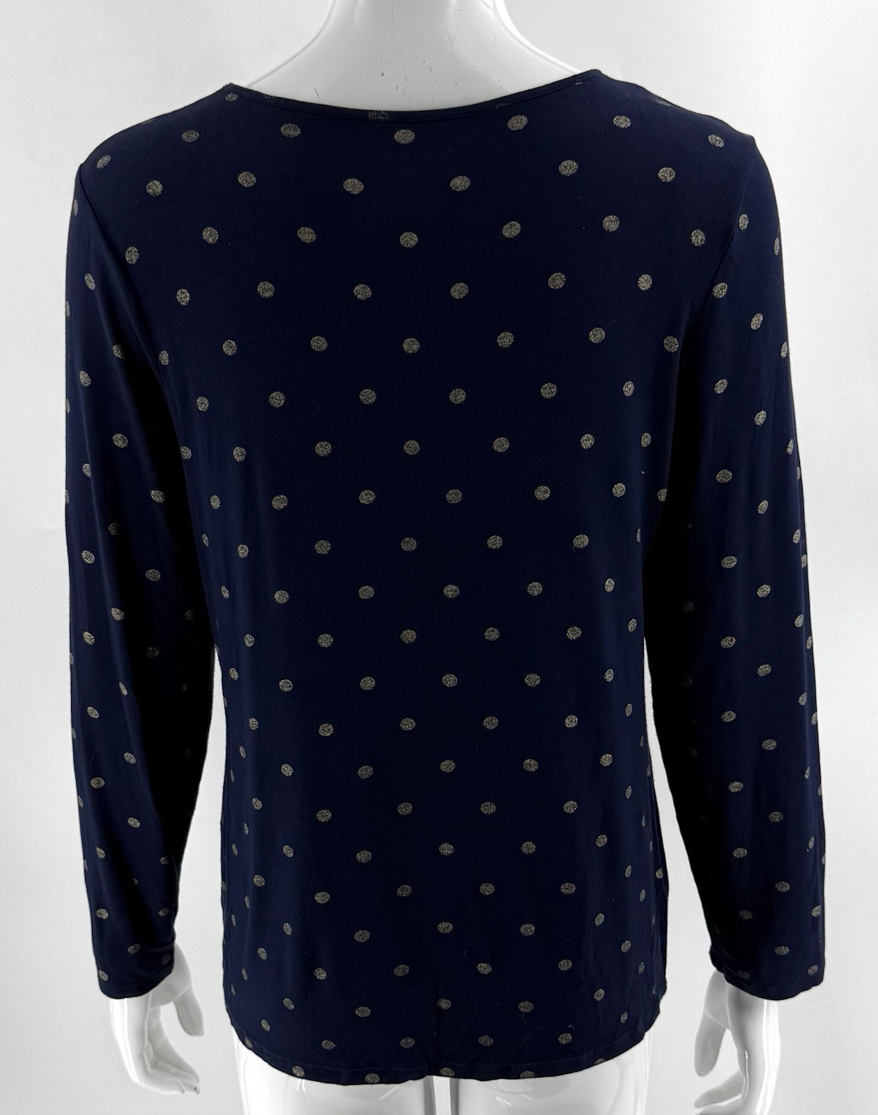 - Chicos Foiled Dot Top Size 1 / US M Navy Blue Gold Polka Dots Tee Shirt