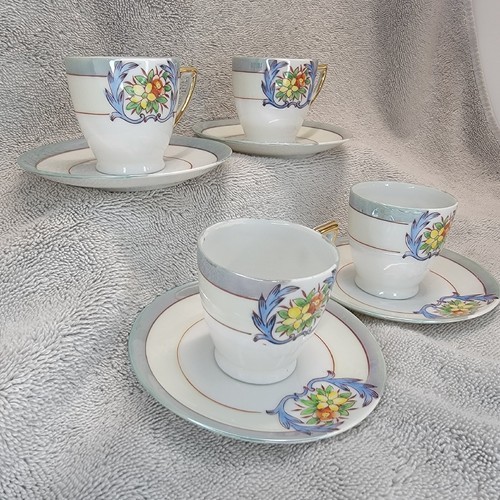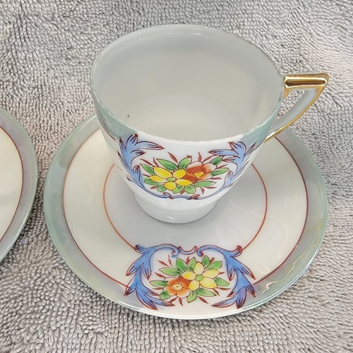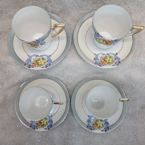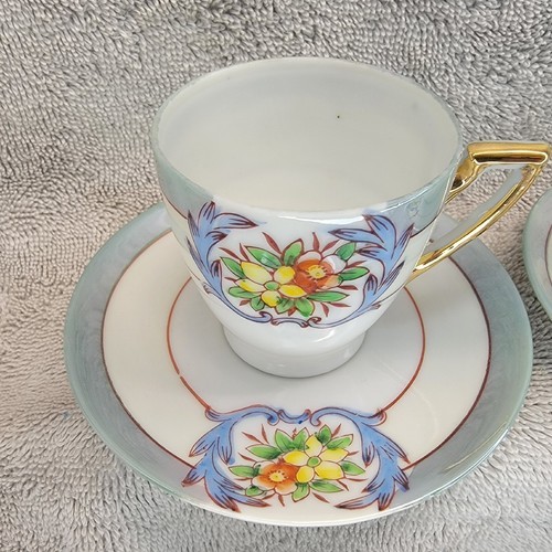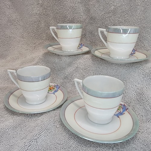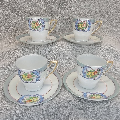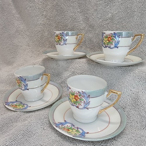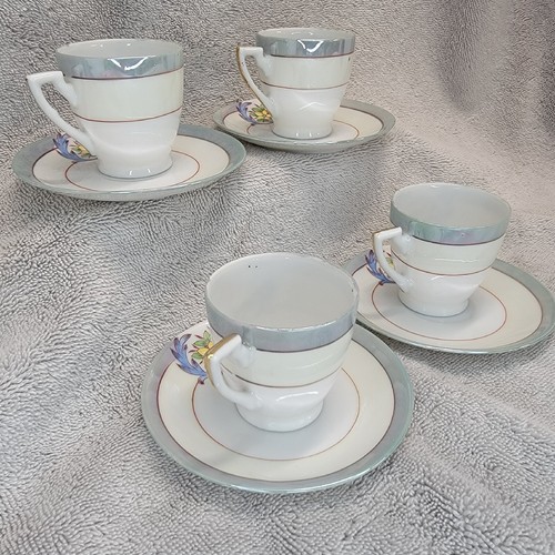 - Chikaramachi Lustreware Tea Cup Saucer Set Of 4 Floral Hand-Painted Japan
