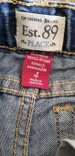 This sale is for one (1) pair of Children Place brand denim jeans Youth Girl's Size 4 Denim jeans are blue in color Bootcut Adjustable waistband Belt loops around waistband Inseam measures approximately 16.5" 73% Cotton 26% Polyester 1% Spandex Machine wash ~ Tumble dry Jeans are in good ~ pre-owned condition Please view photos for a good description of this item Thank you!