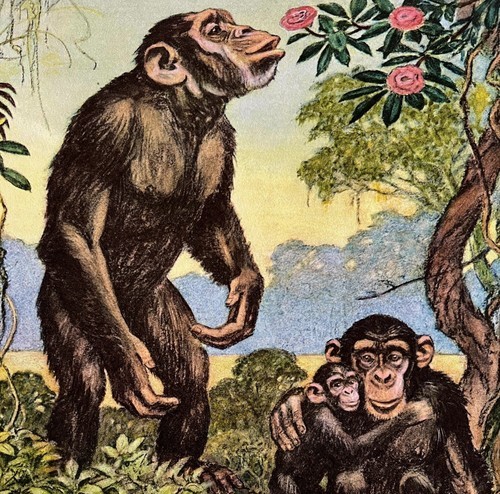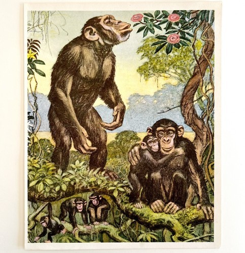 Chimpanzee Apes 1954 Art Print Paul Bransom Marlin Perkins Zooparade DWDD3