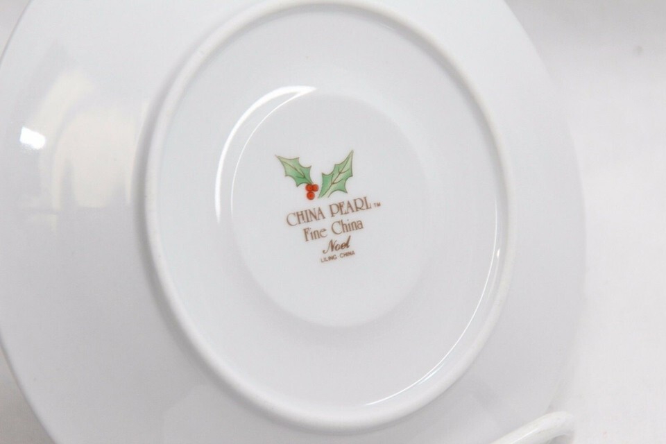 - China Pearl Noel Saucers Christmas 6-1/4" Set of 14 Brown Back Stamp Xmas