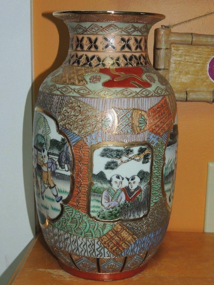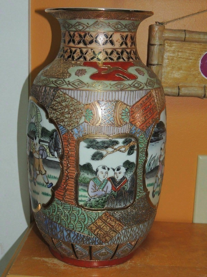 - Chinese 12.5" Vase heavy gold decoration poss Qing Qianlong Antique 18th/ 19th 2
