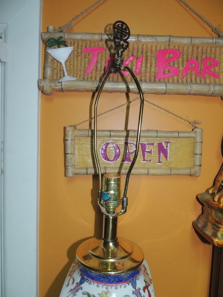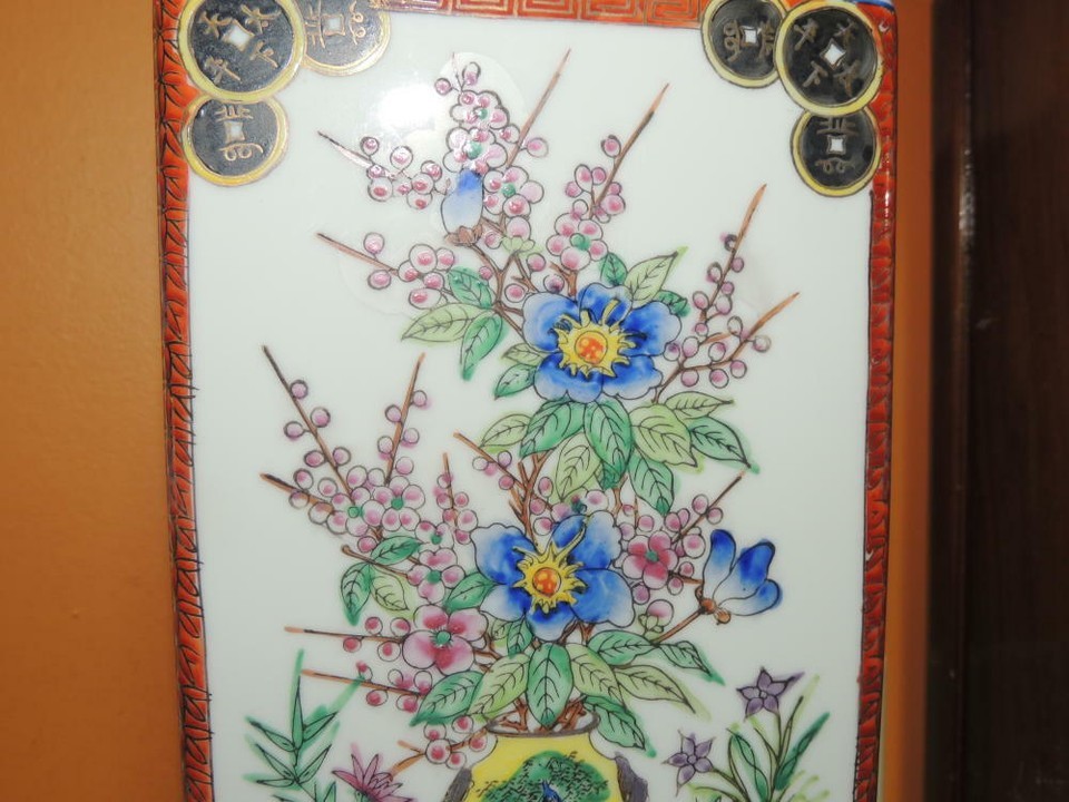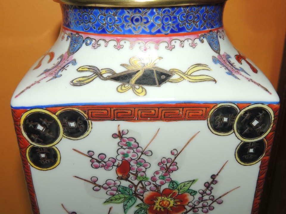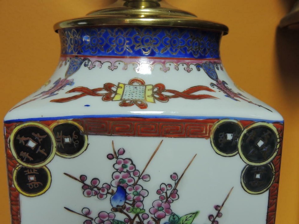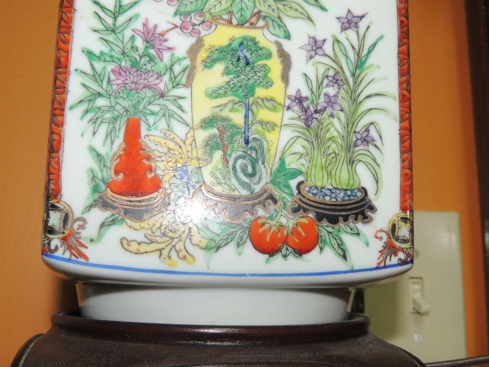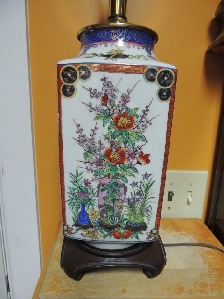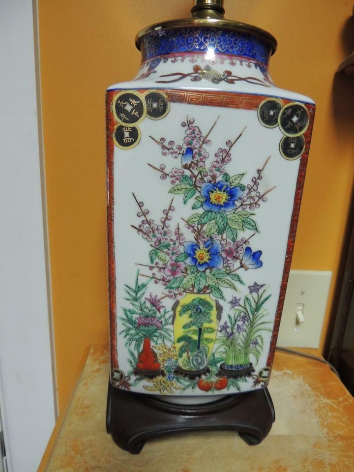 - Chinese 30" Lamp Rose Medallion Vase coins vases flowers bonsai famille Vintage