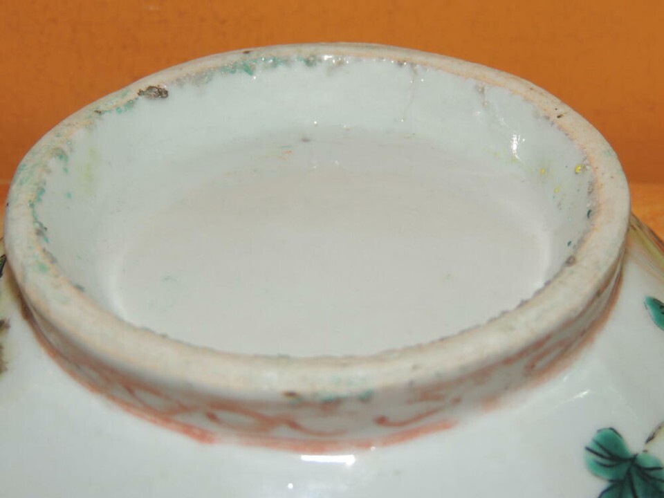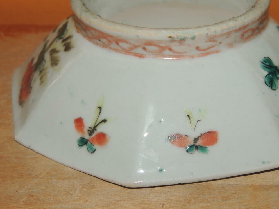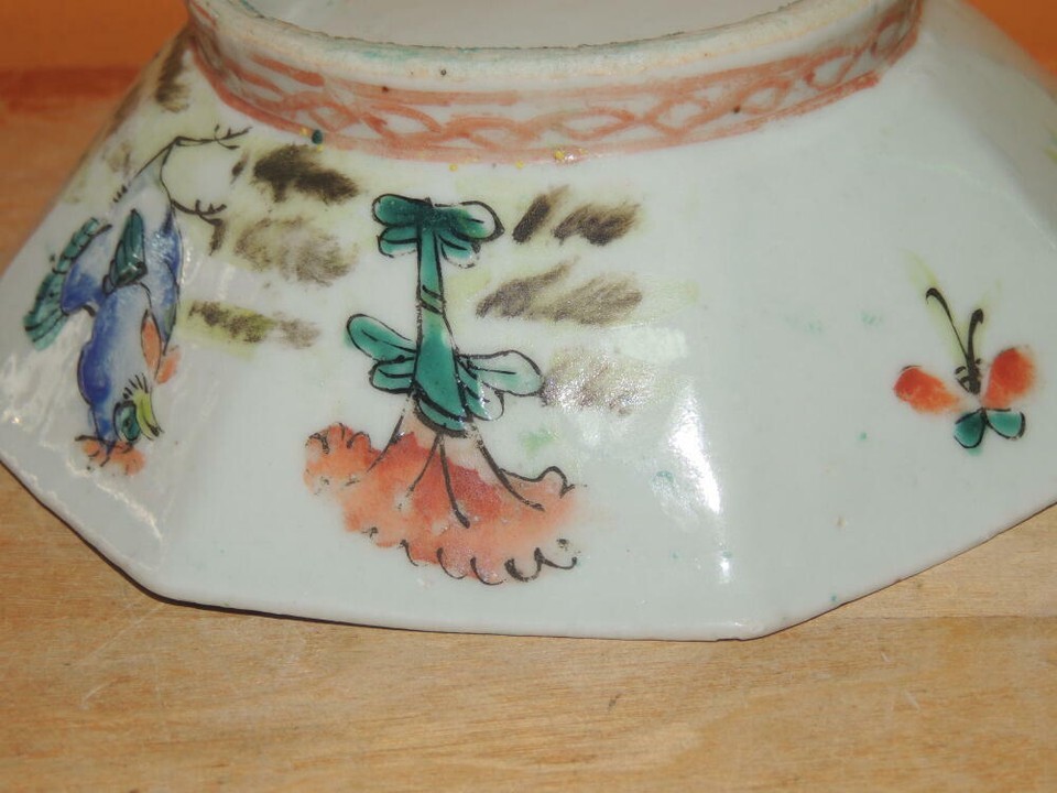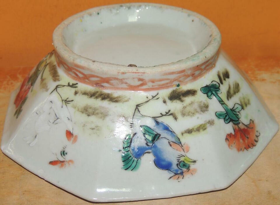 - Chinese 6" Hand Painted Bowl ROOSTER Antique Qing 19th earlier Octagonal Footed