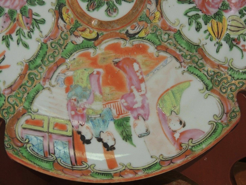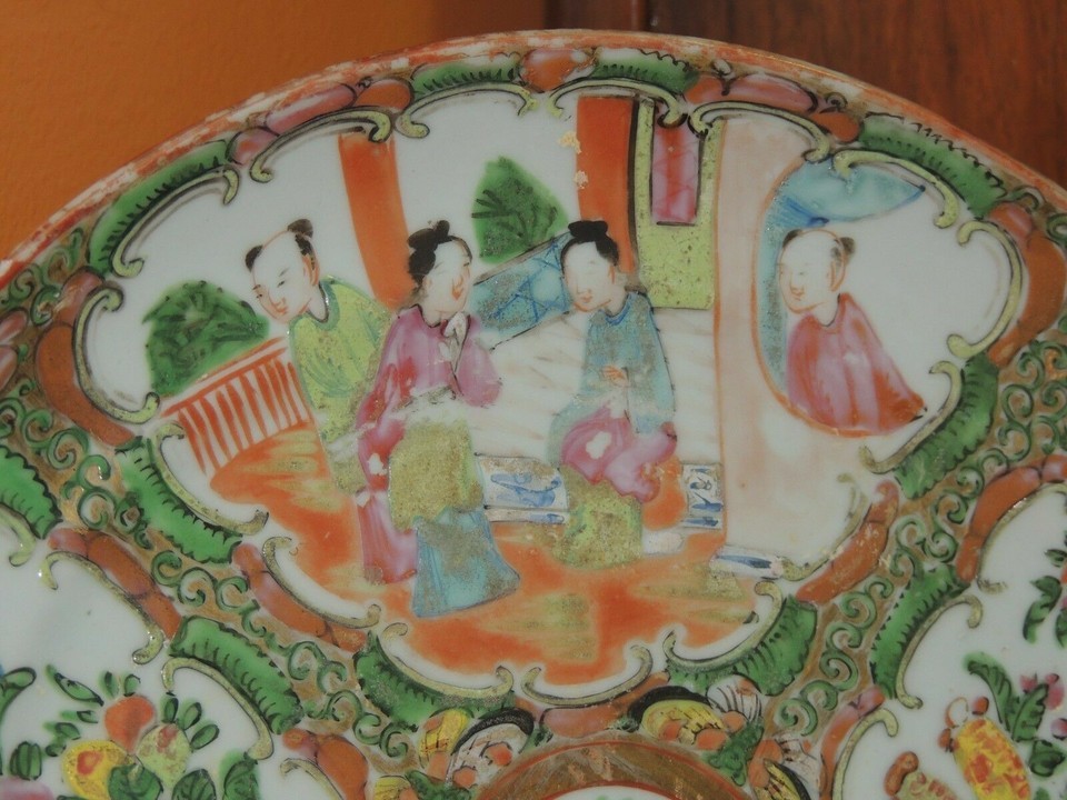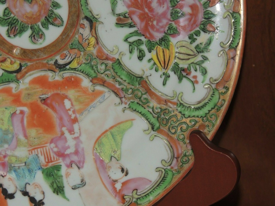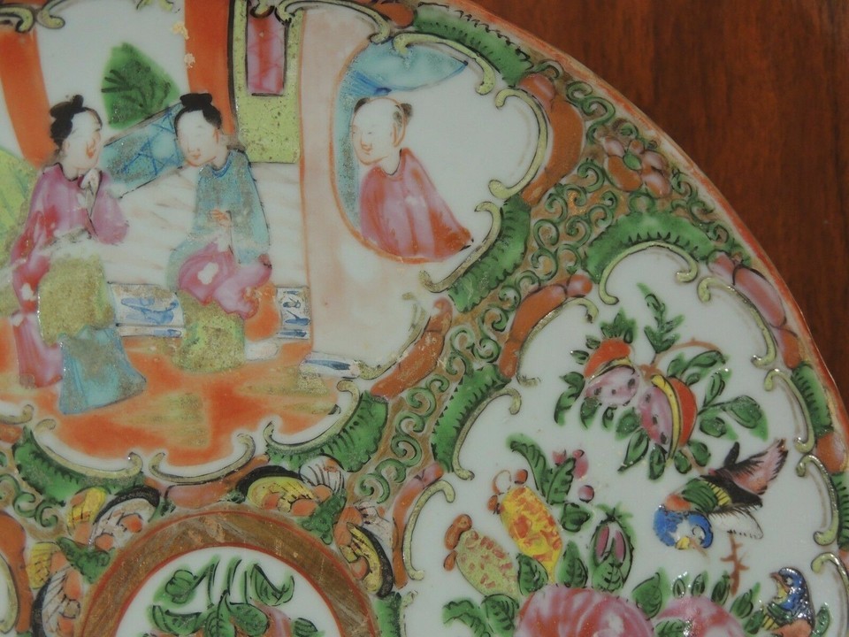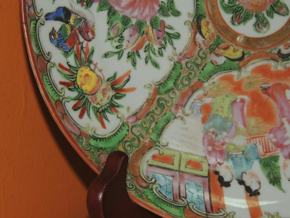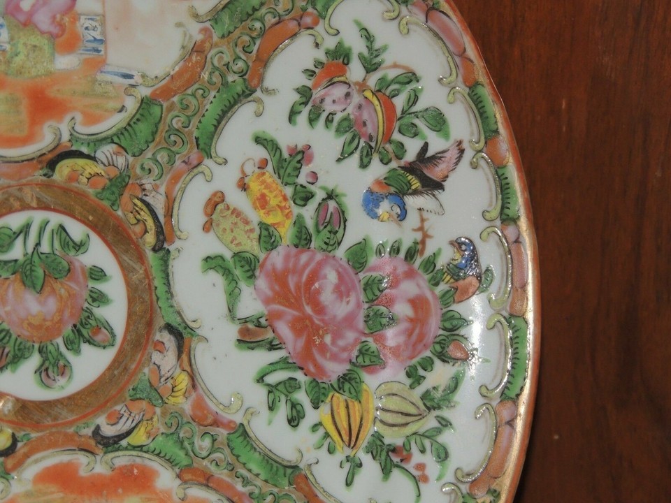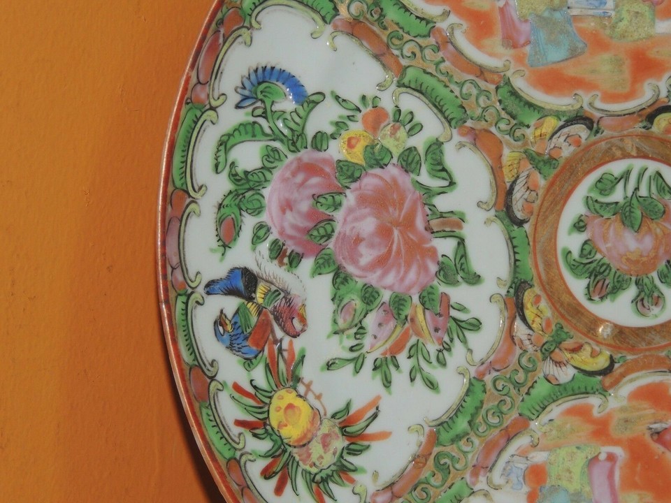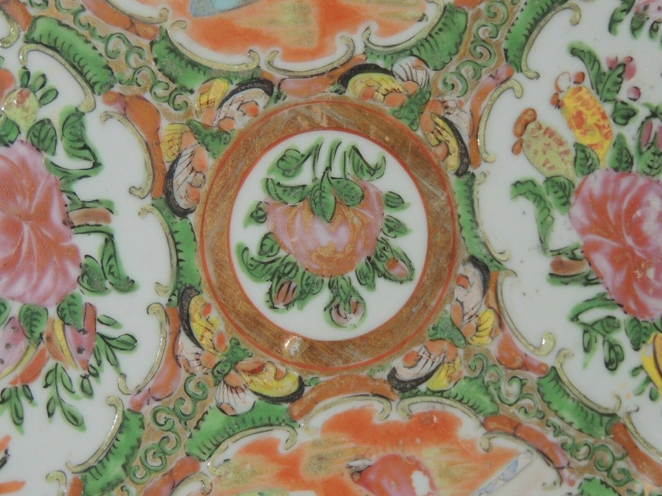 - Chinese 9.25" Plate Platter Rose Medallion floral poss 19th late Qing Qianlong