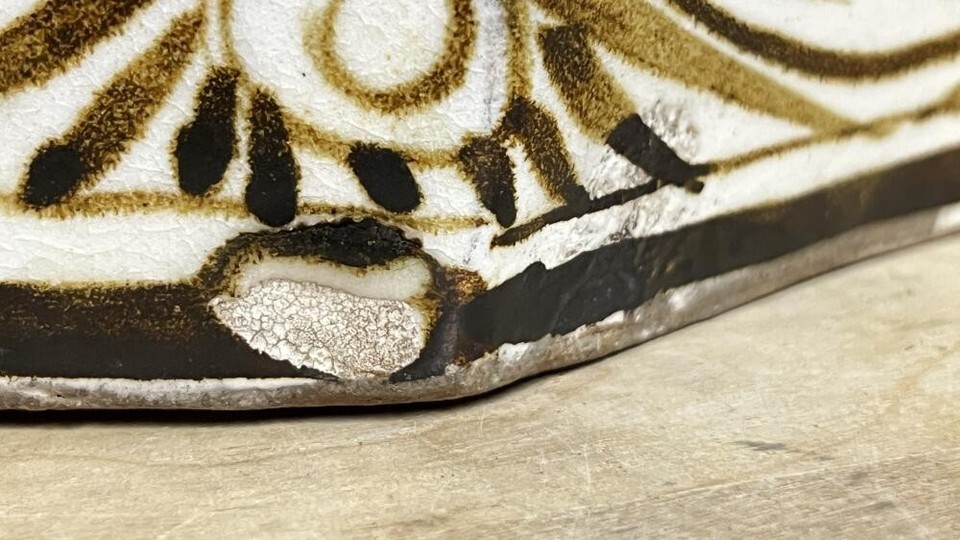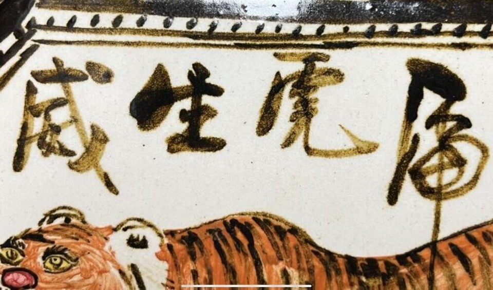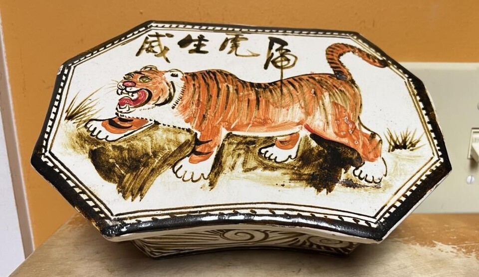 - Chinese Buff stoneware Pillow Cream Slip Iron Brown Tiger Yuan Tz'u Chou Cizhou