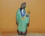 Chinese Mud Man Men 3.5" Green overglaze fan Mudman Vintage / Antique c 1935