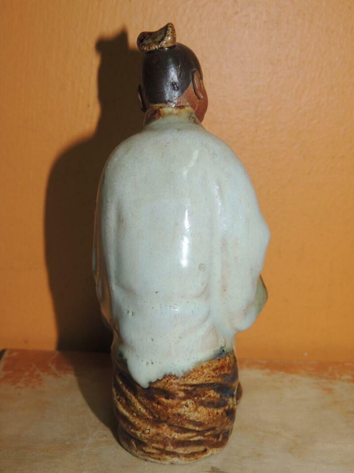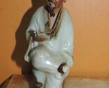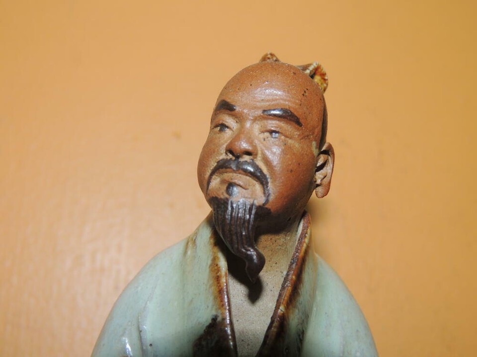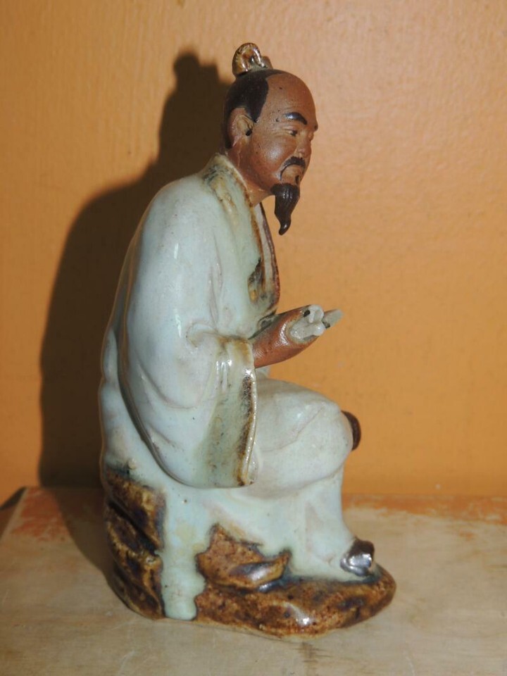 - Chinese Mud Man/ Men Beige Robe w book 5" drip glaze unmarked Mudman Antique