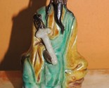 - Chinese Mud Man Scholar Seated Green Robe sword 3.25" marked China Mudman c1910