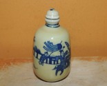 - Chinese Porcelain 3" Snuff Bottle beige blue people horse w/ lid vintage antique