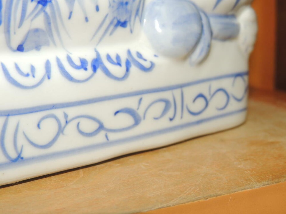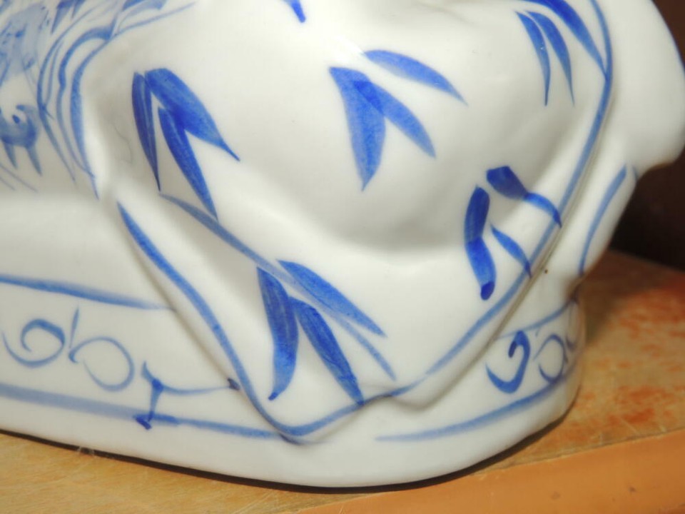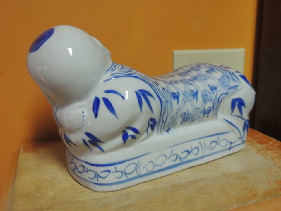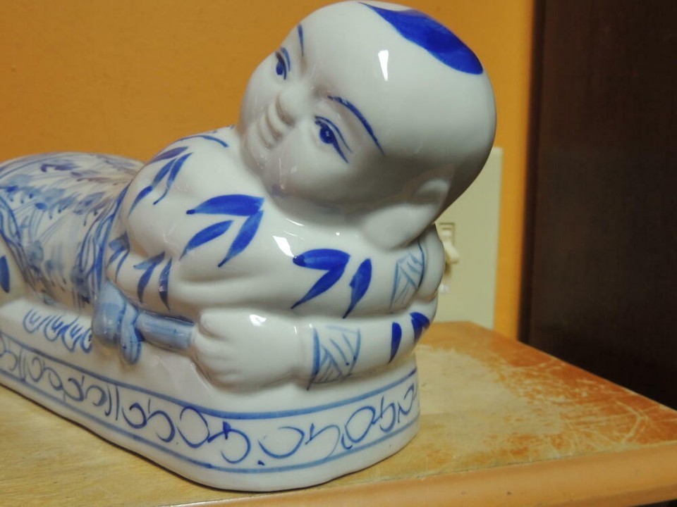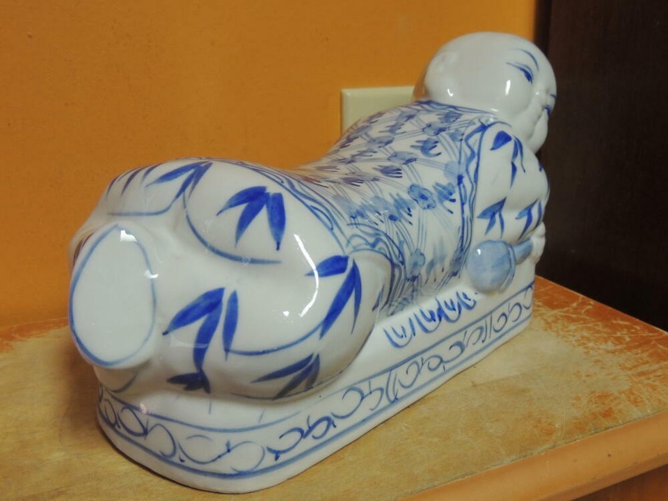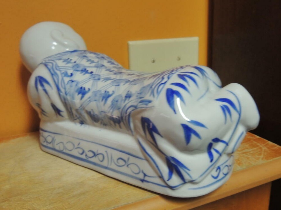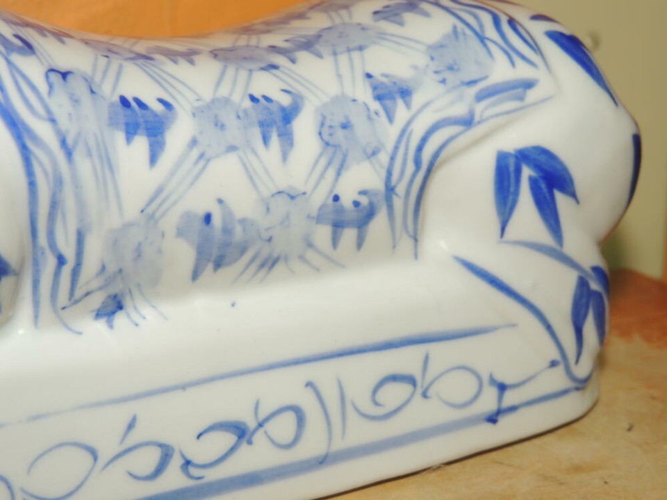 - Chinese Porcelain Pillow Figurine Opium Headrest Blue White Post 1940 Vintage 2
