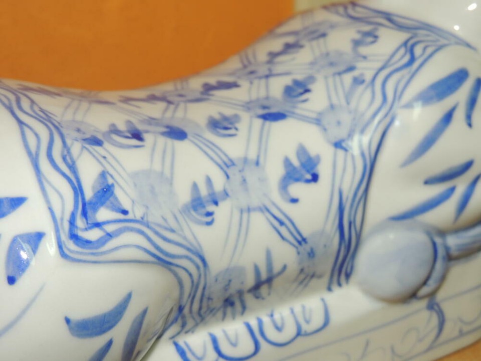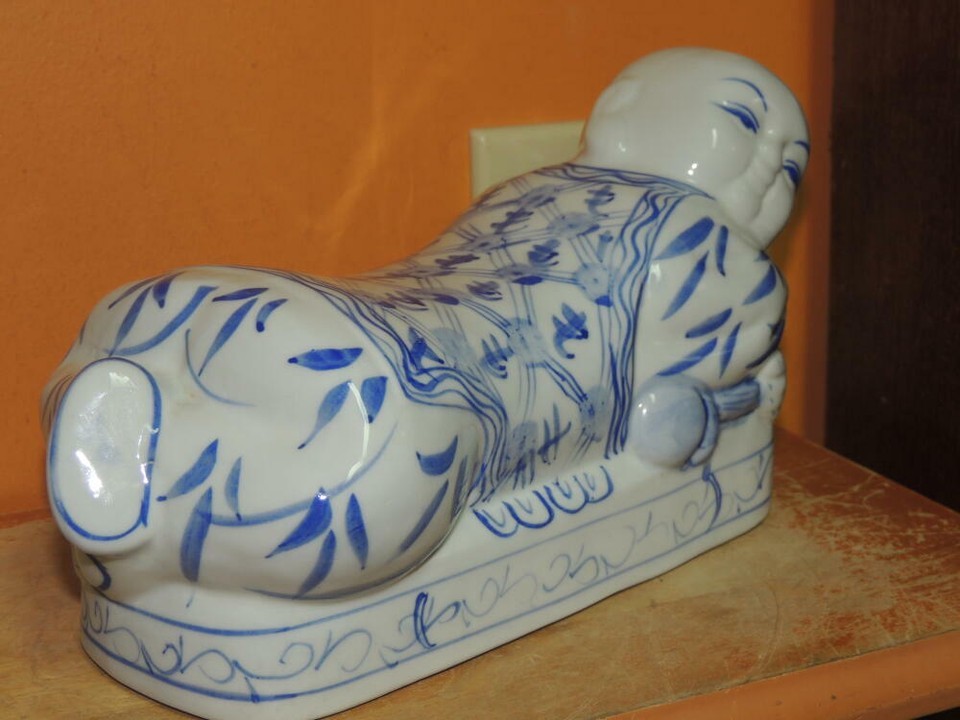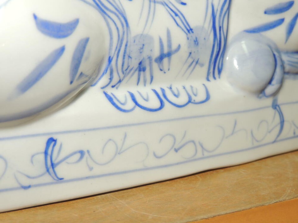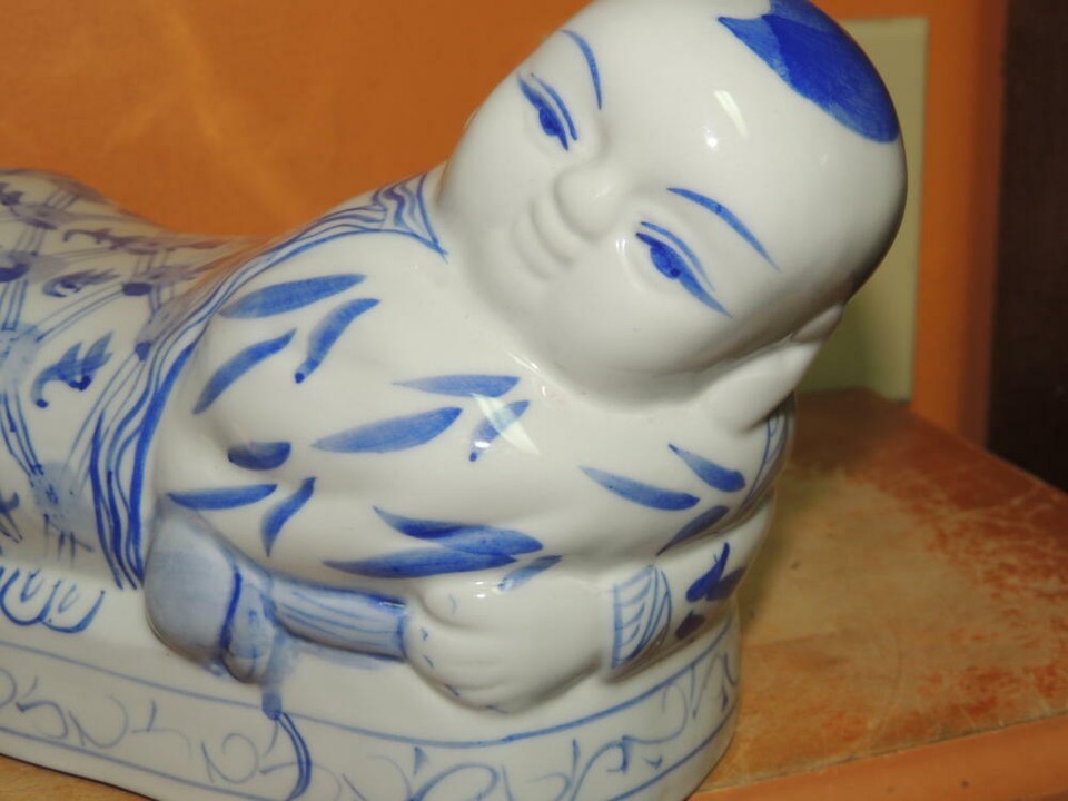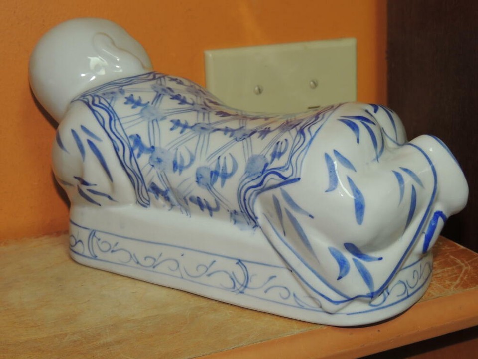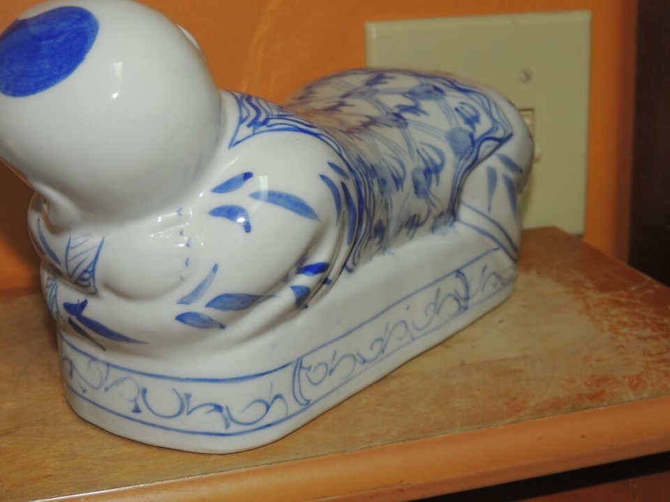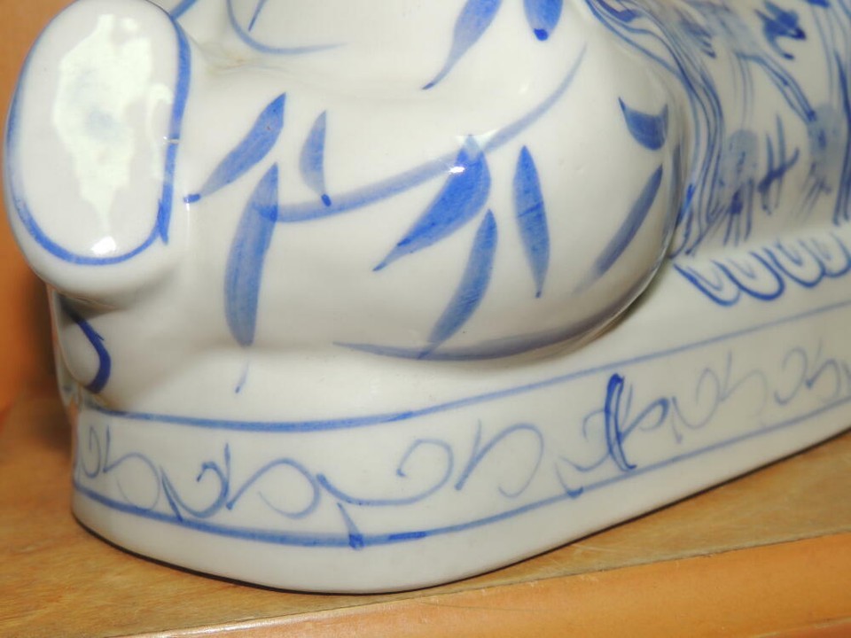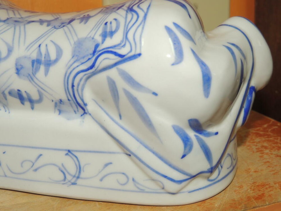 - Chinese Porcelain Pillow Figurine Opium Headrest Blue White Post 1940 Vintage 3