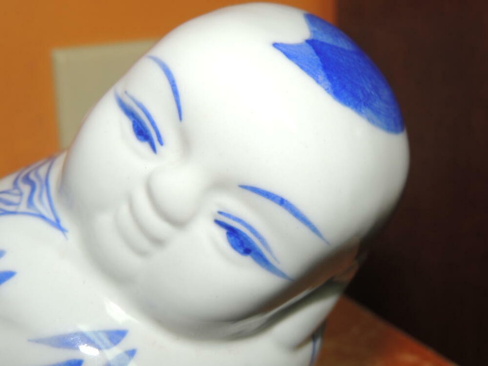 ONE PORCELAIN FIGURE, MARKED WITH THE CHINESE CHARACTER FOR THE NUMBER THREE (I HAVE TWO SELLING SEPARATELY, BUT THEY ARE TO MY KNOWLEDGE NOT A SET. I AM NOT AN ANTIQUITIES EXPERT - PLEASE LOOK AT THE PICTURES CAREFULLY. YOU ARE THE EXPERT, IF YOU HAVE DOUBTS PLEASE DO NOT PURCHASE.