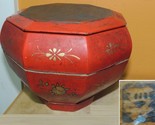 - Chinese Red & Gold Wood / Wooden 7" Octagonal Wedding Basket Box Antique marked
