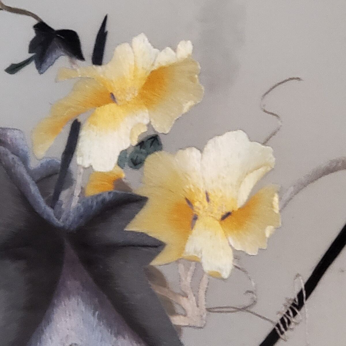 - Chinese Silk Screen Embroidery Glass Inlaid Table Screen 16x12 Inch Framed